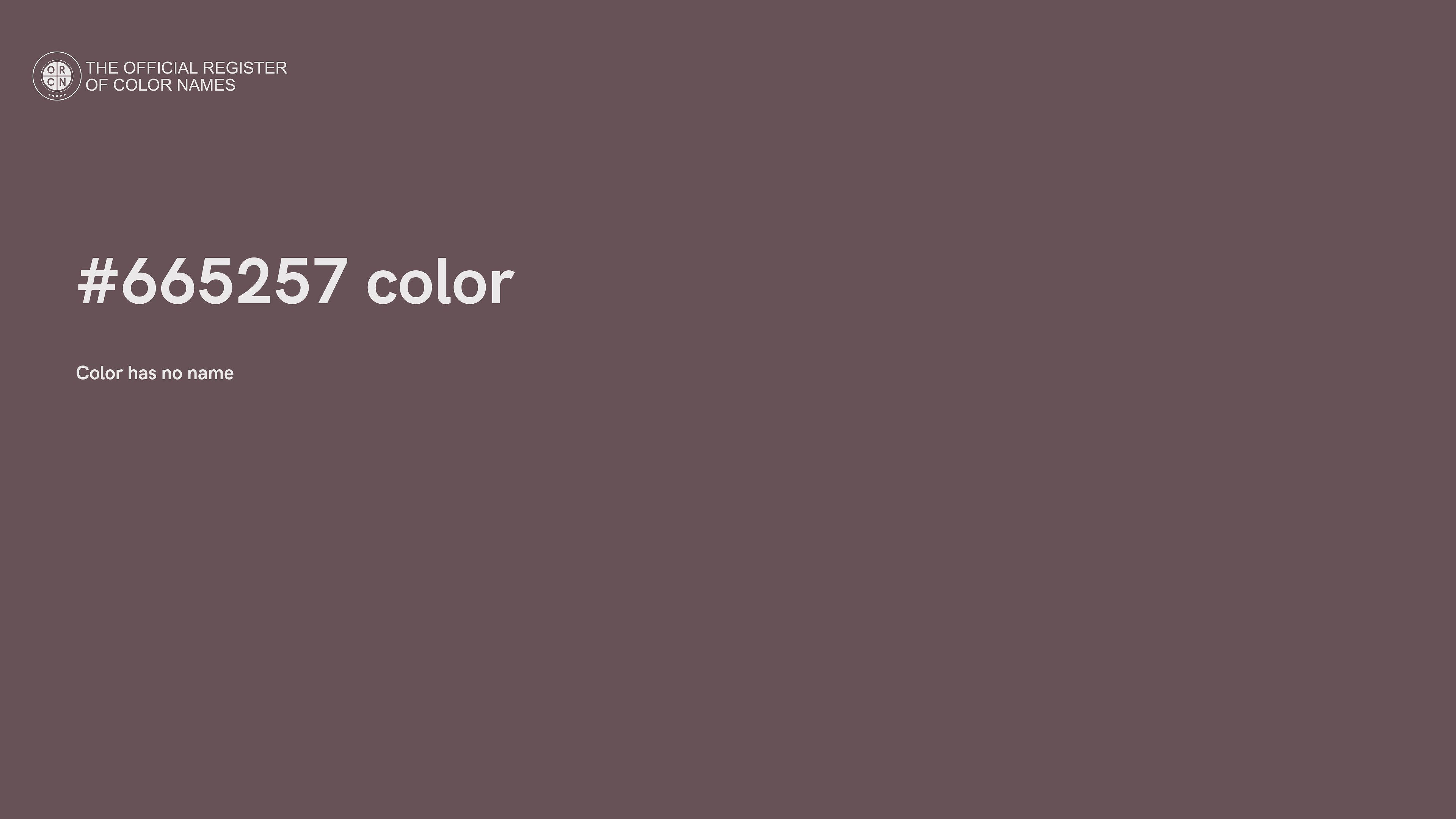 The digital color HEX #665257 belongs to the Red Color Family featuring Low Saturation (Saturation Family) and Neutral (Brightness Family).