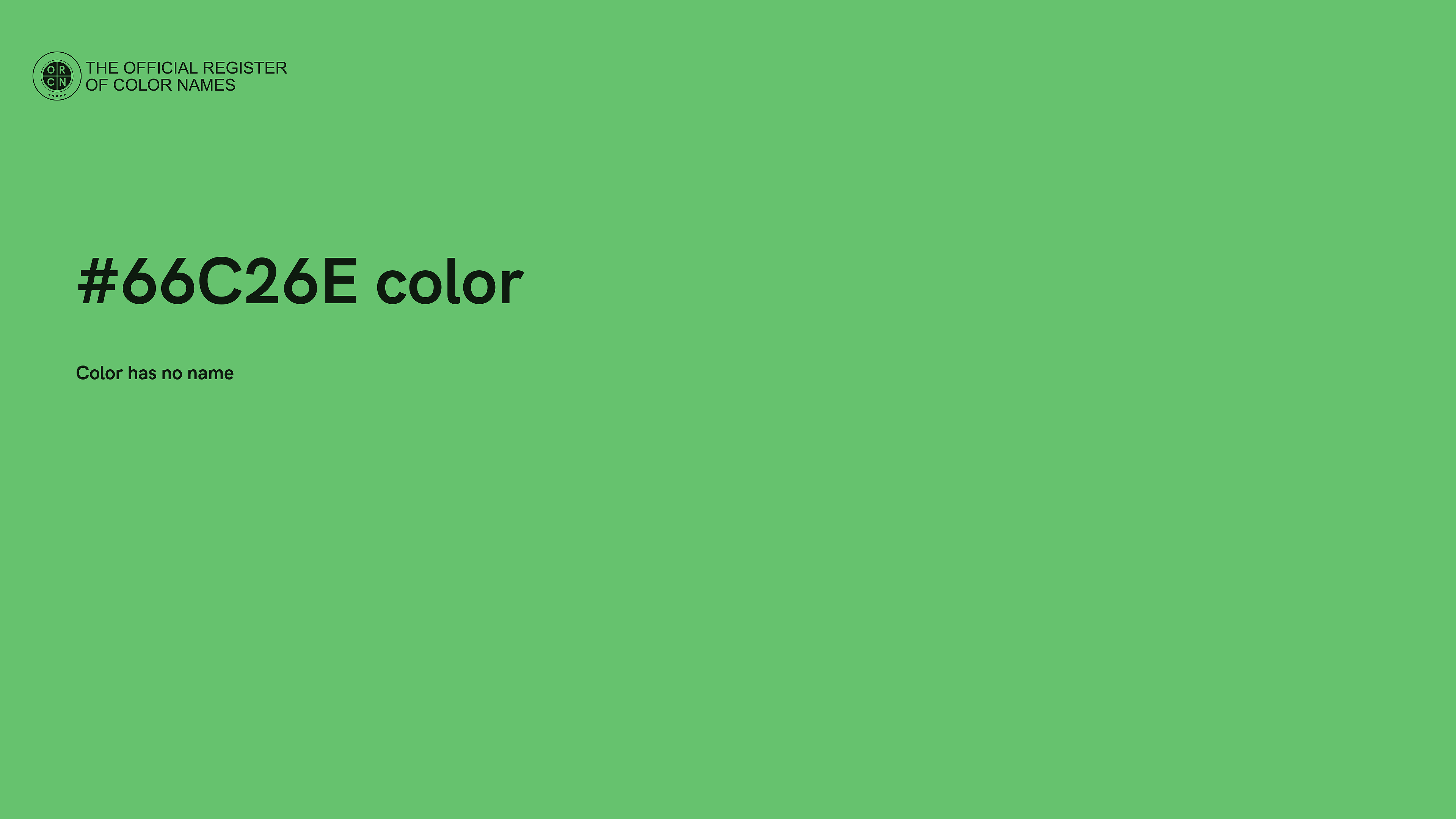 The digital color HEX #66C26E belongs to the Green Color Family featuring Moderate Saturation (Saturation Family) and Light (Brightness Family).