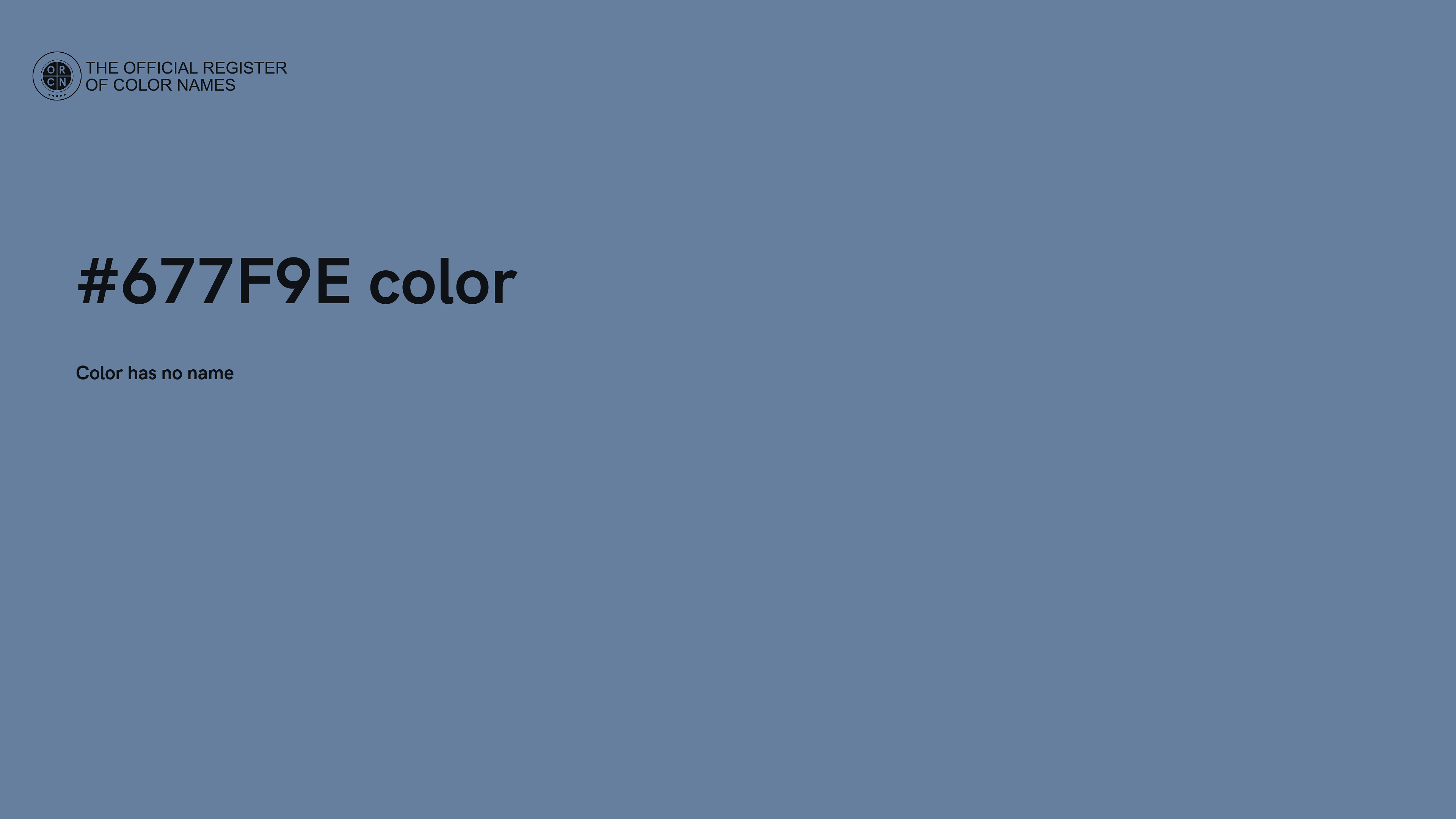 The digital color HEX #677F9E belongs to the Azure Color Family featuring Low Saturation (Saturation Family) and Light (Brightness Family).