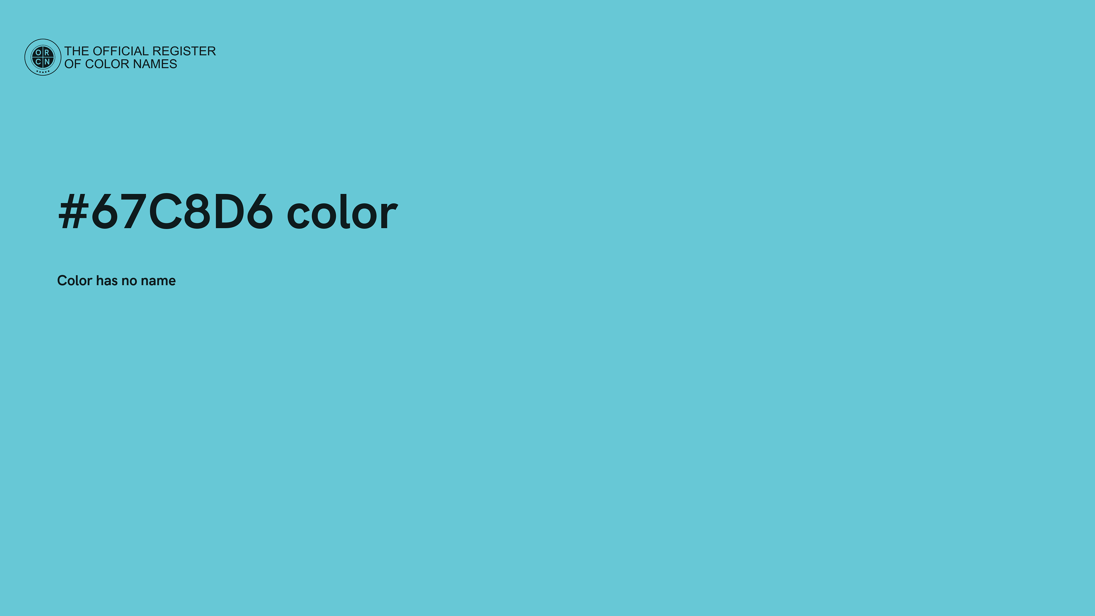For printing in non digital world, #67C8D6 is represented in CMYK as 44 Cyan, 5 Magenta, 0 Yellow, and 16 Black (Key) (C:44 M:5 Y:0 K:16).