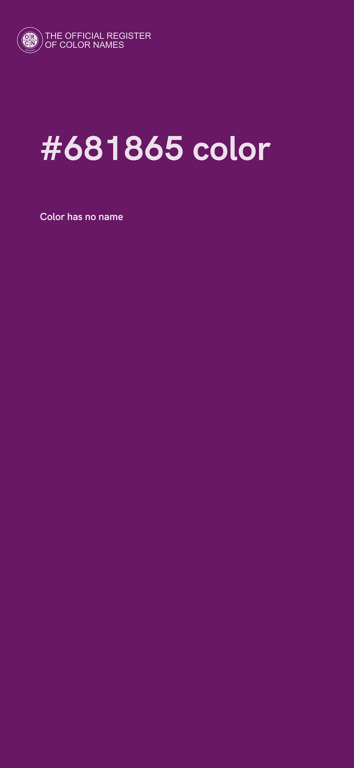 The digital color HEX #681865 belongs to the Magenta Color Family featuring High Saturation (Saturation Family) and Neutral (Brightness Family).