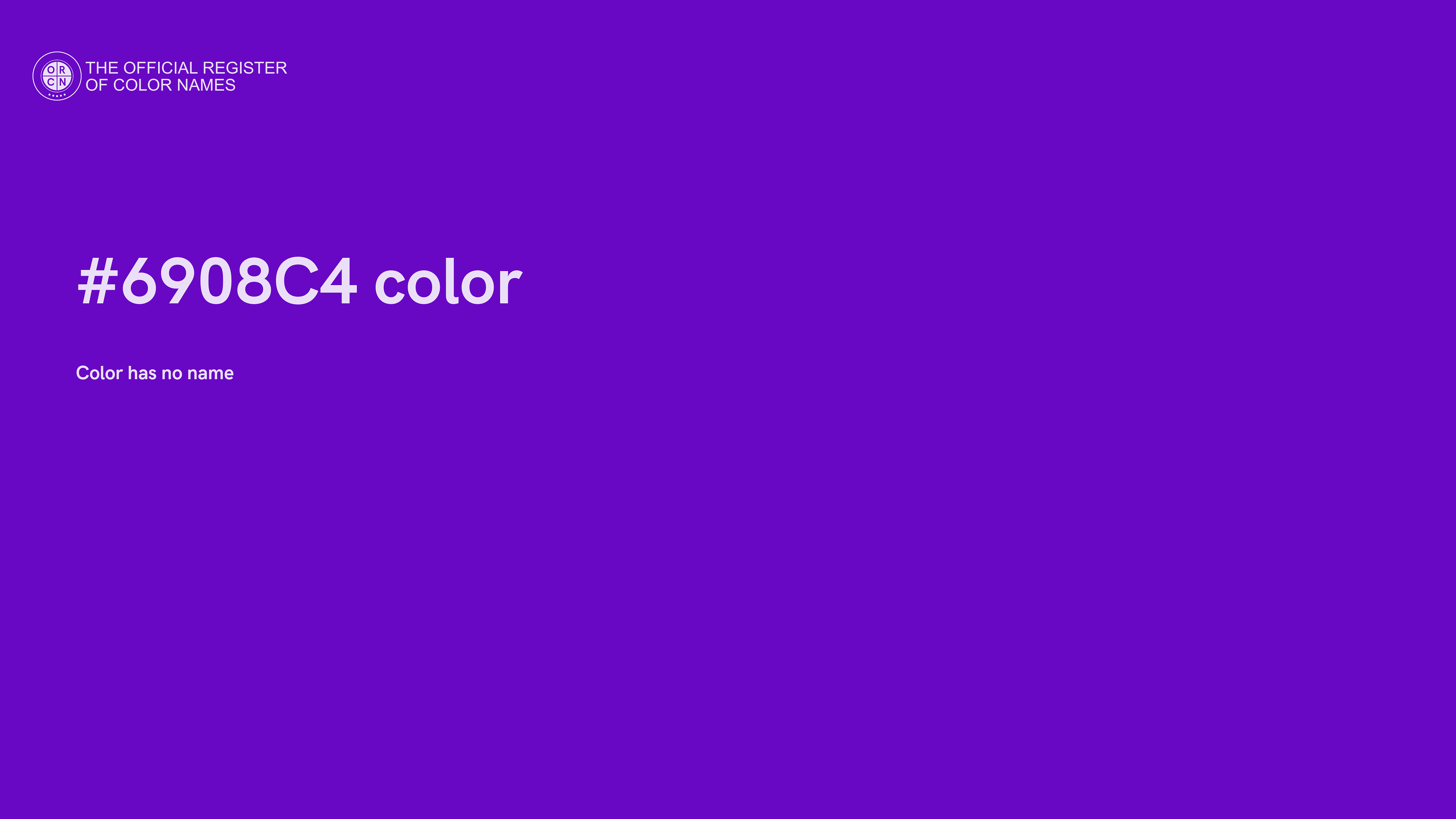 For printing in non digital world, #6908C4 is represented in CMYK as 36 Cyan, 74 Magenta, 0 Yellow, and 23 Black (Key) (C:36 M:74 Y:0 K:23).