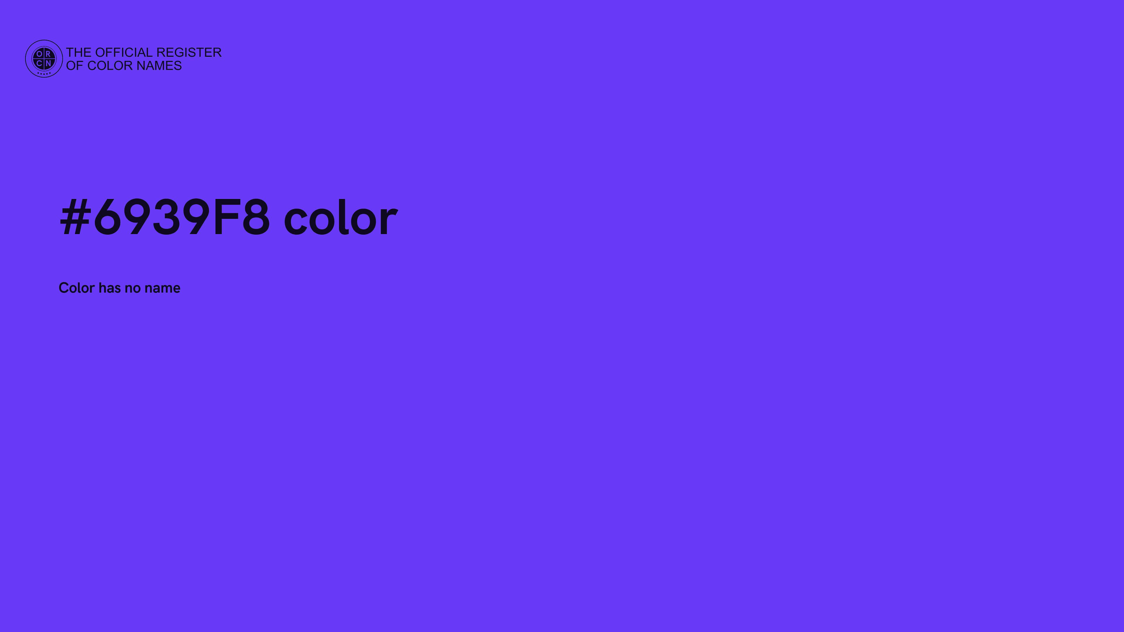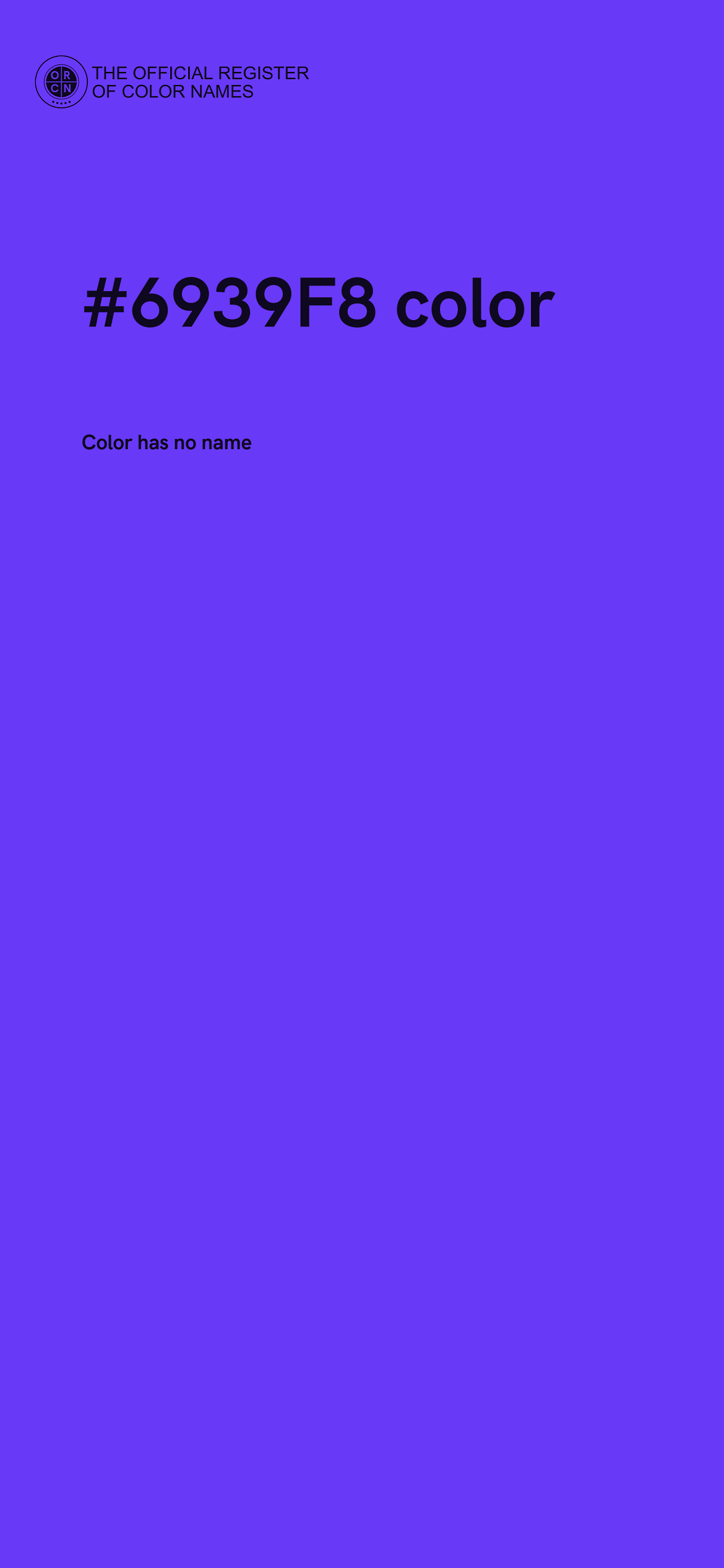 For printing in non digital world, #6939F8 is represented in CMYK as 56 Cyan, 75 Magenta, 0 Yellow, and 3 Black (Key) (C:56 M:75 Y:0 K:3).