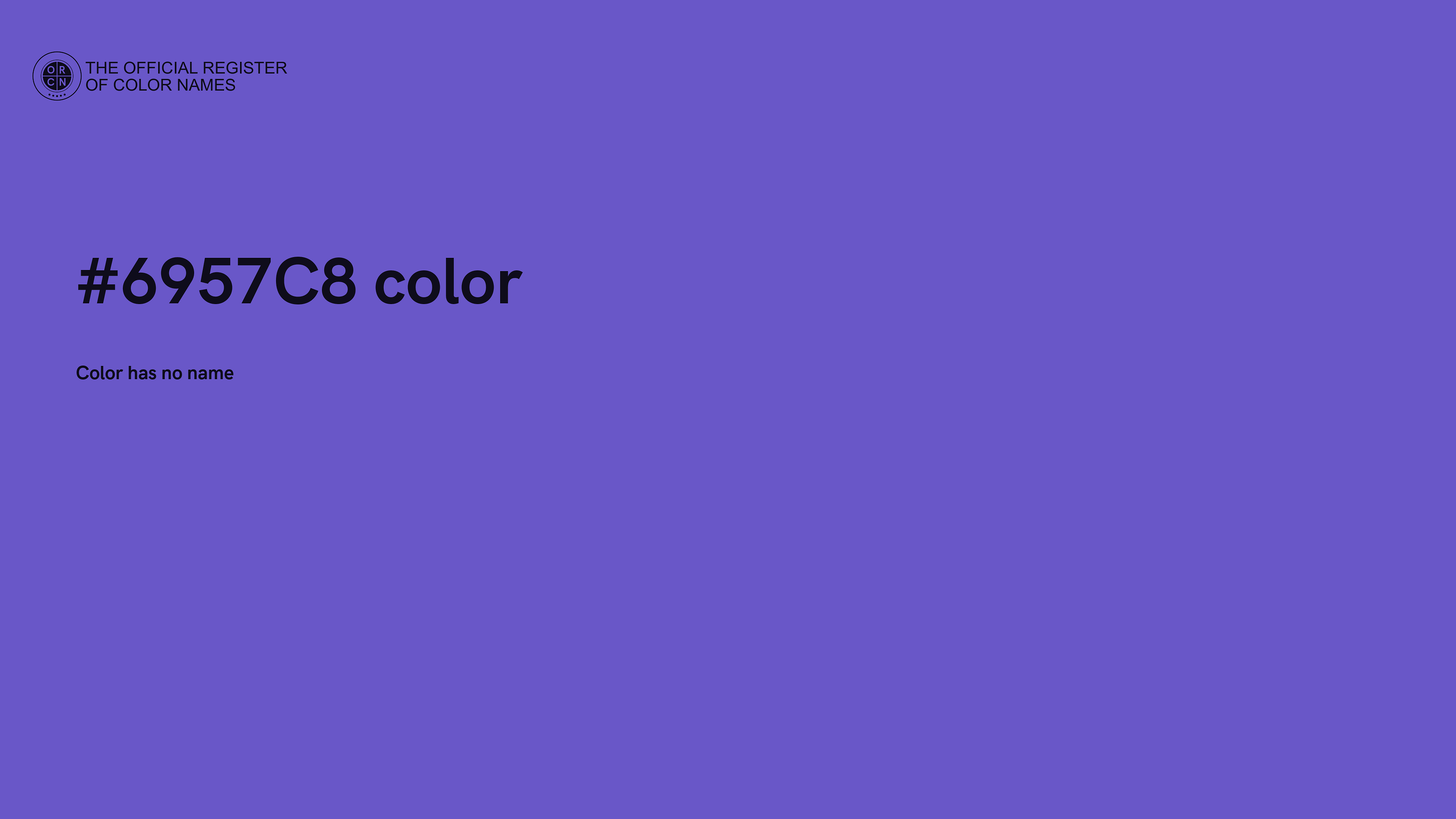 For printing in non digital world, #6957C8 is represented in CMYK as 37 Cyan, 44 Magenta, 0 Yellow, and 22 Black (Key) (C:37 M:44 Y:0 K:22).