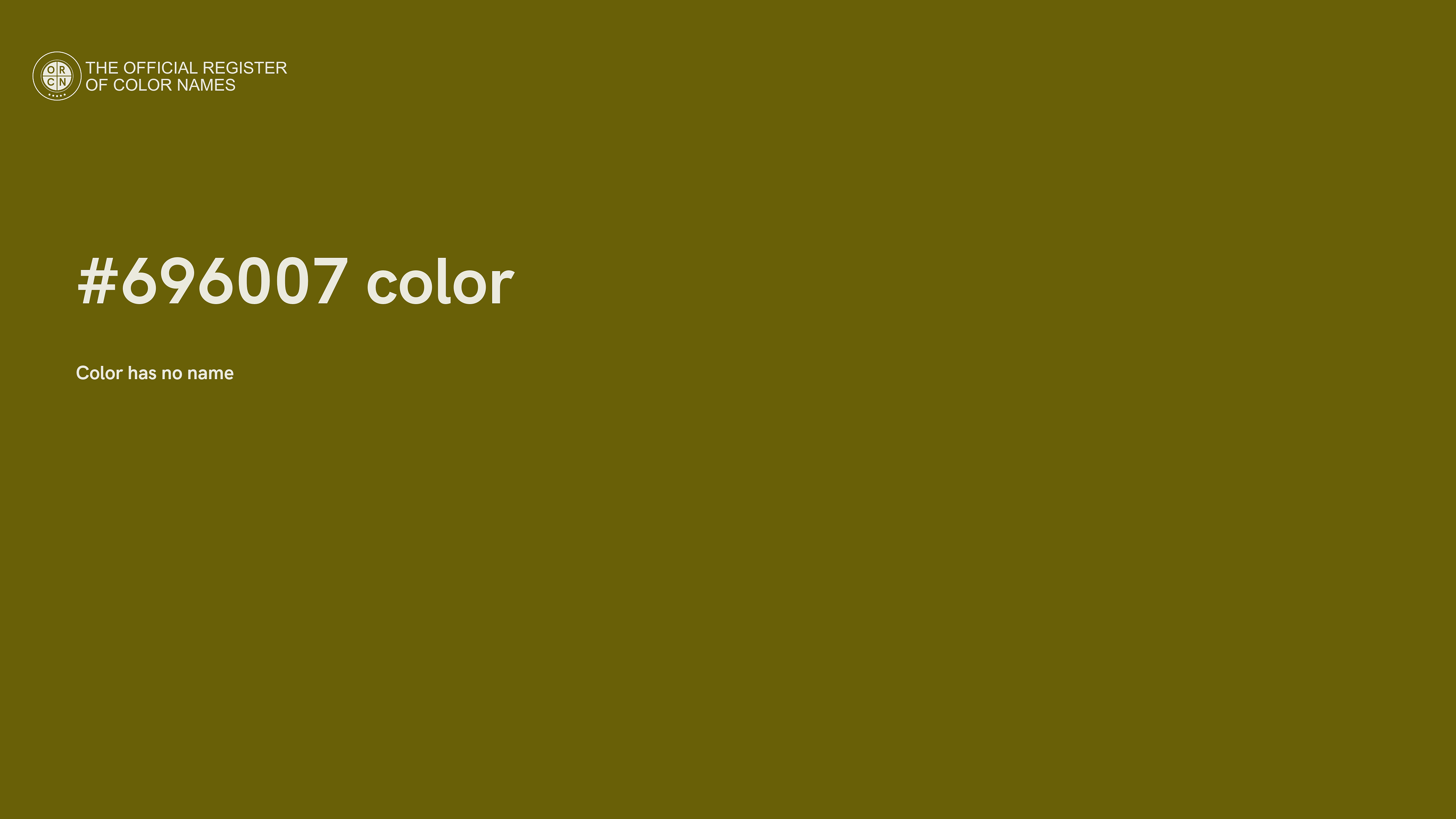 For printing in non digital world, #696007 is represented in CMYK as 0 Cyan, 4 Magenta, 38 Yellow, and 59 Black (Key) (C:0 M:4 Y:38 K:59).