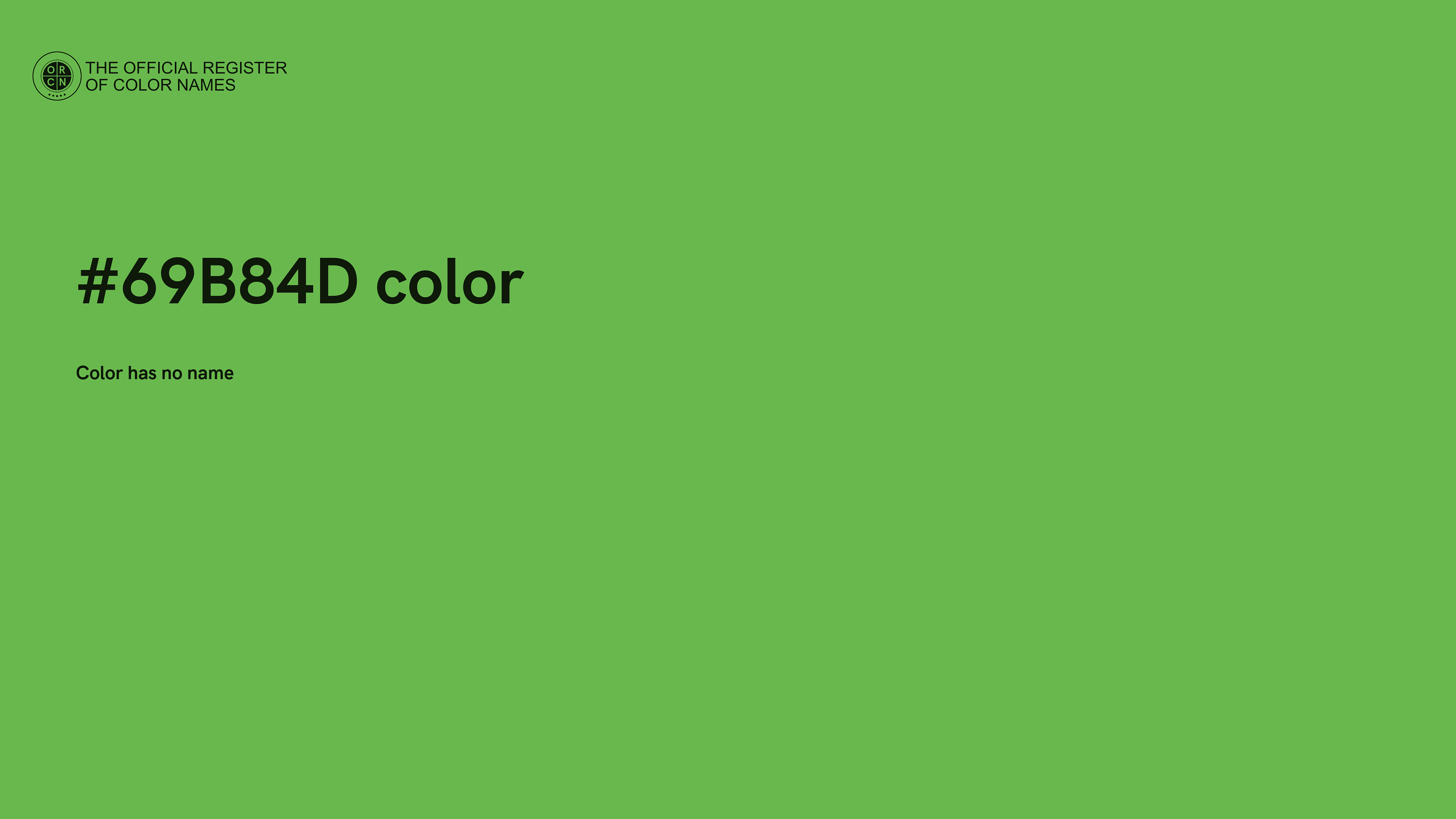 The digital color HEX #69B84D belongs to the Chartreuse Color Family featuring Moderate Saturation (Saturation Family) and Light (Brightness Family).