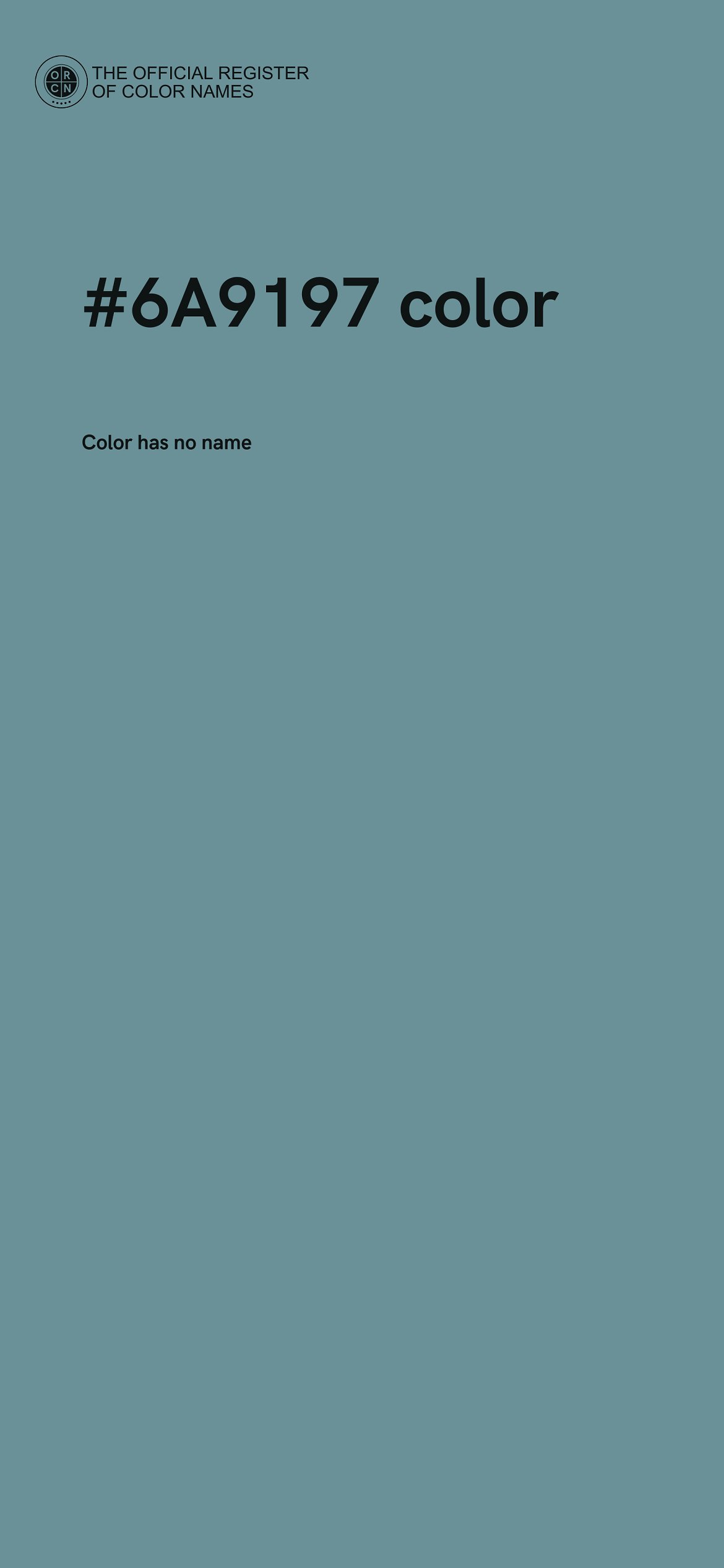 The digital color HEX #6A9197 belongs to the Cyan Color Family featuring Low Saturation (Saturation Family) and Light (Brightness Family).