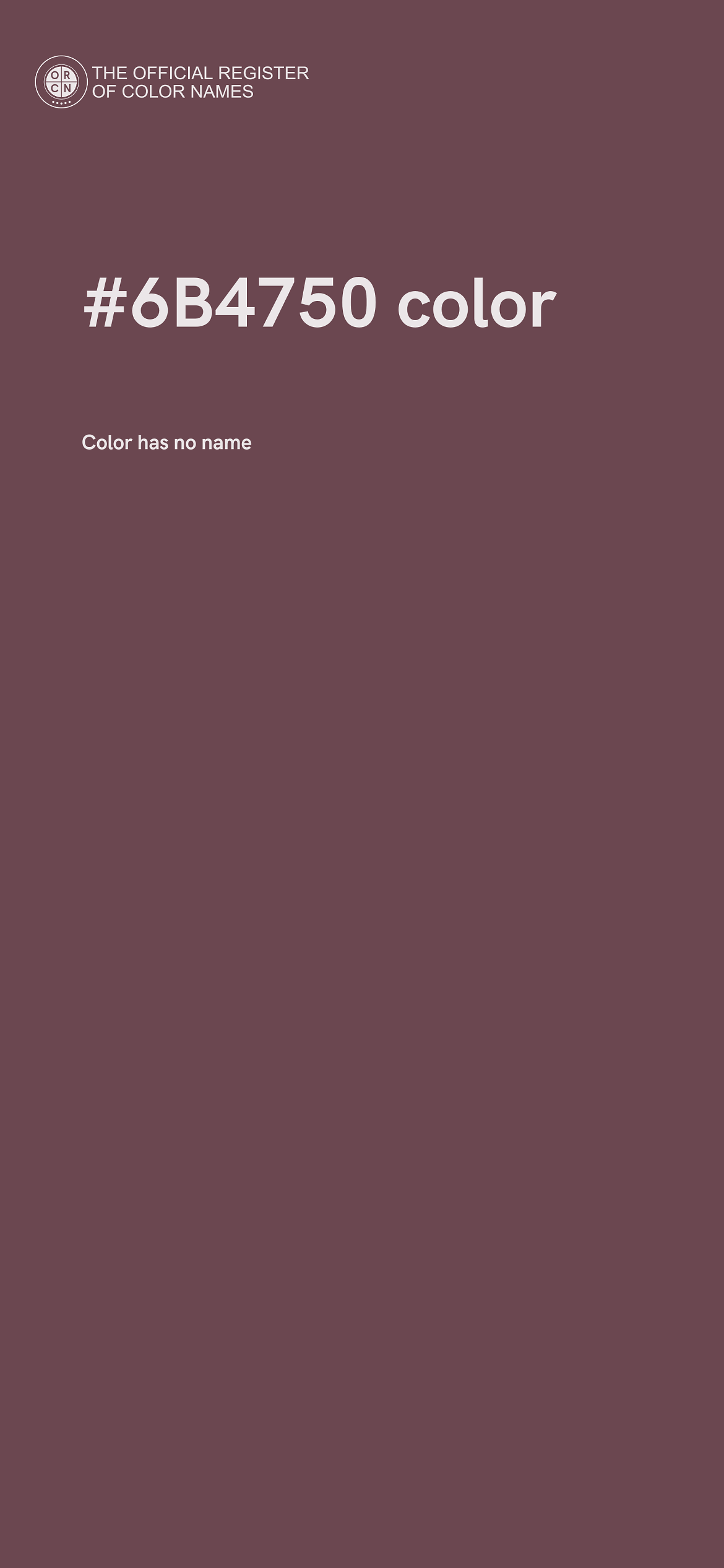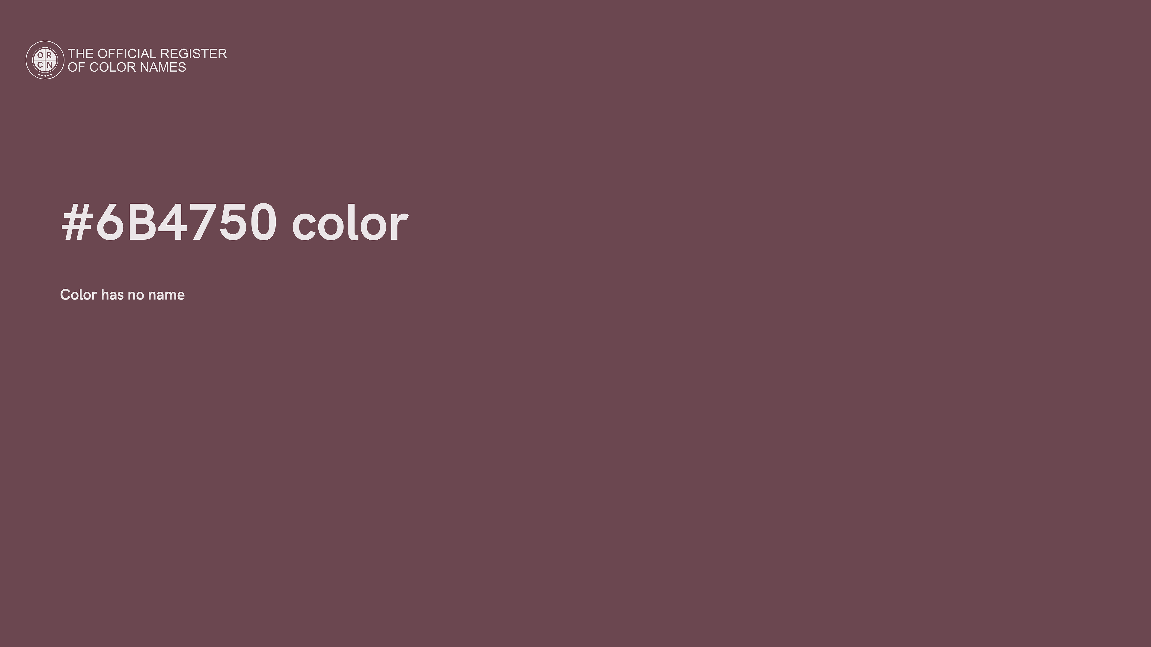 The digital color HEX #6B4750 belongs to the Red Color Family featuring Low Saturation (Saturation Family) and Neutral (Brightness Family).