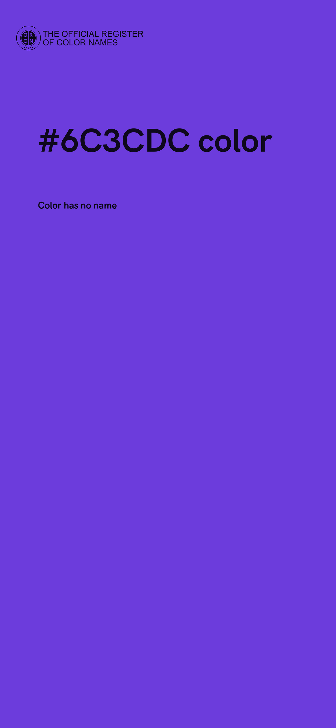 For printing in non digital world, #6C3CDC is represented in CMYK as 44 Cyan, 63 Magenta, 0 Yellow, and 14 Black (Key) (C:44 M:63 Y:0 K:14).