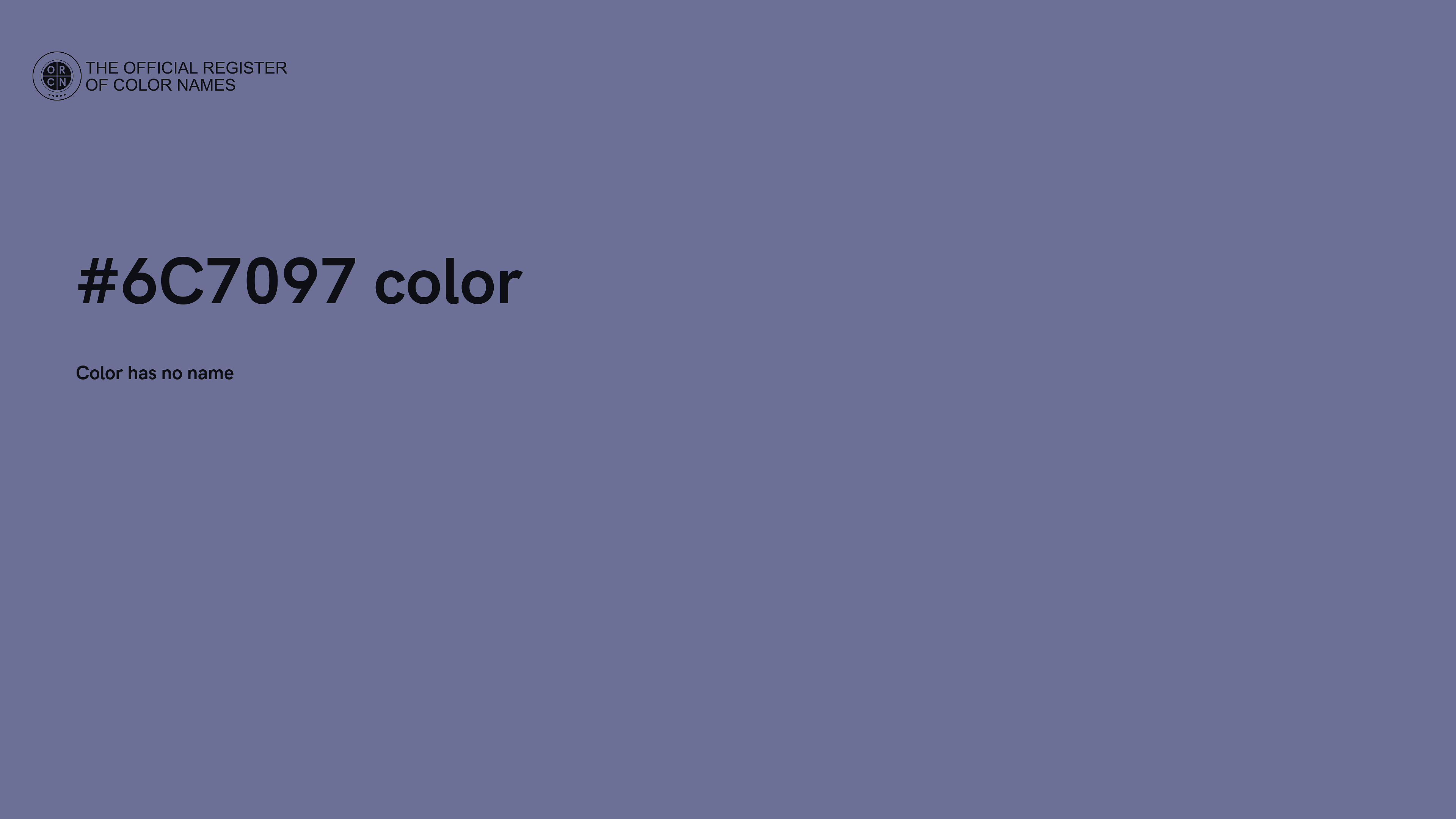The digital color HEX #6C7097 belongs to the Blue Color Family featuring Low Saturation (Saturation Family) and Light (Brightness Family).