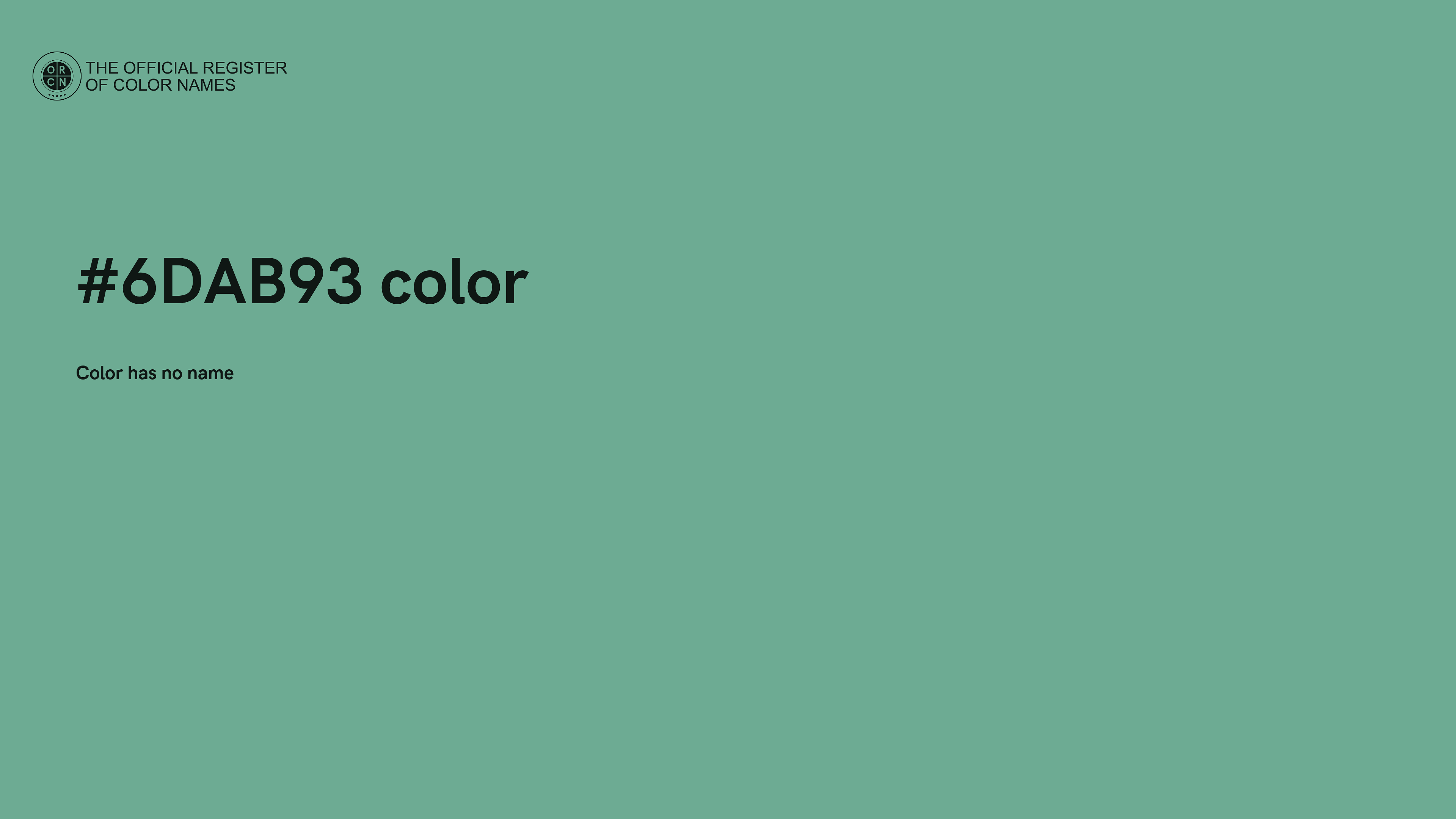 The digital color HEX #6DAB93 belongs to the Spring Green Color Family featuring Mild Saturation (Saturation Family) and Light (Brightness Family).