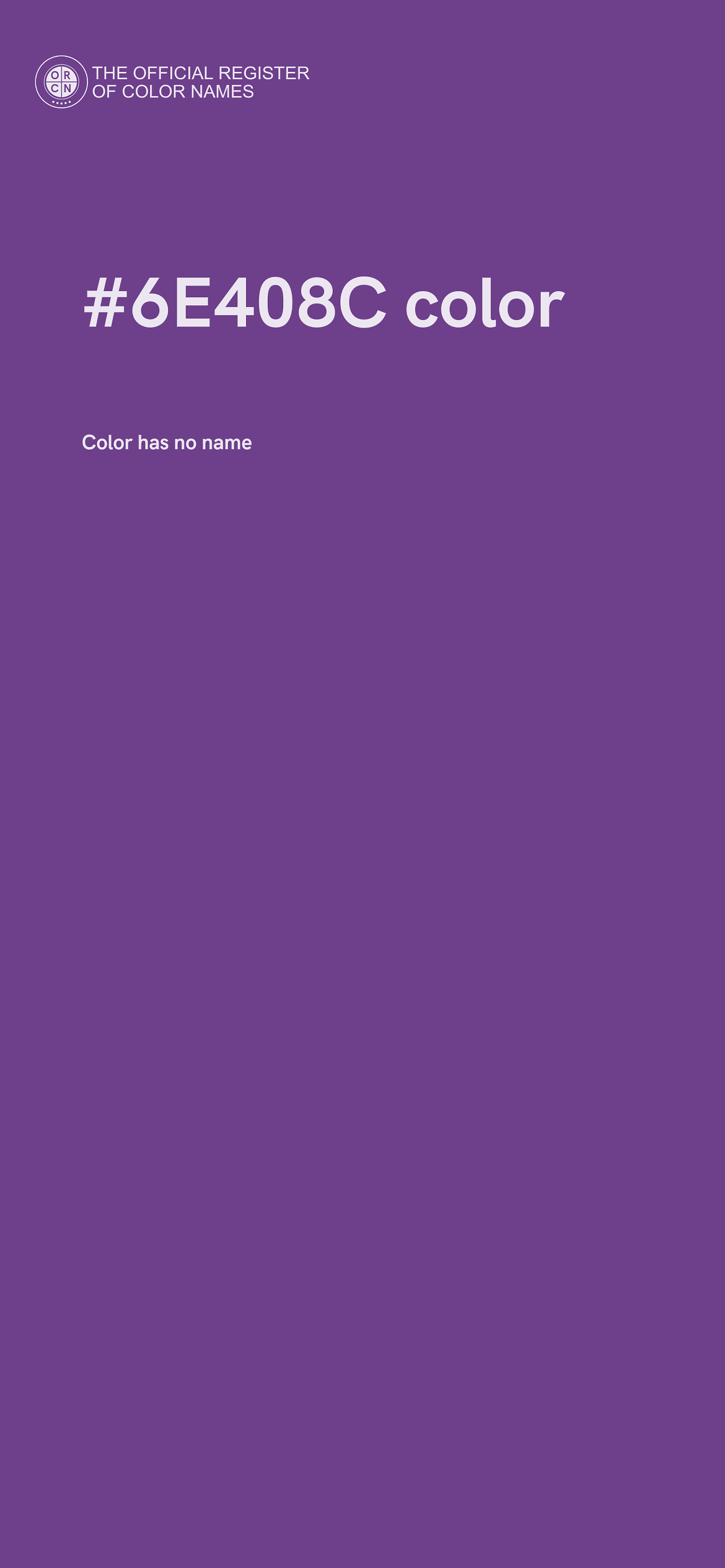The digital color HEX #6E408C belongs to the Violet Color Family featuring Mild Saturation (Saturation Family) and Light (Brightness Family).