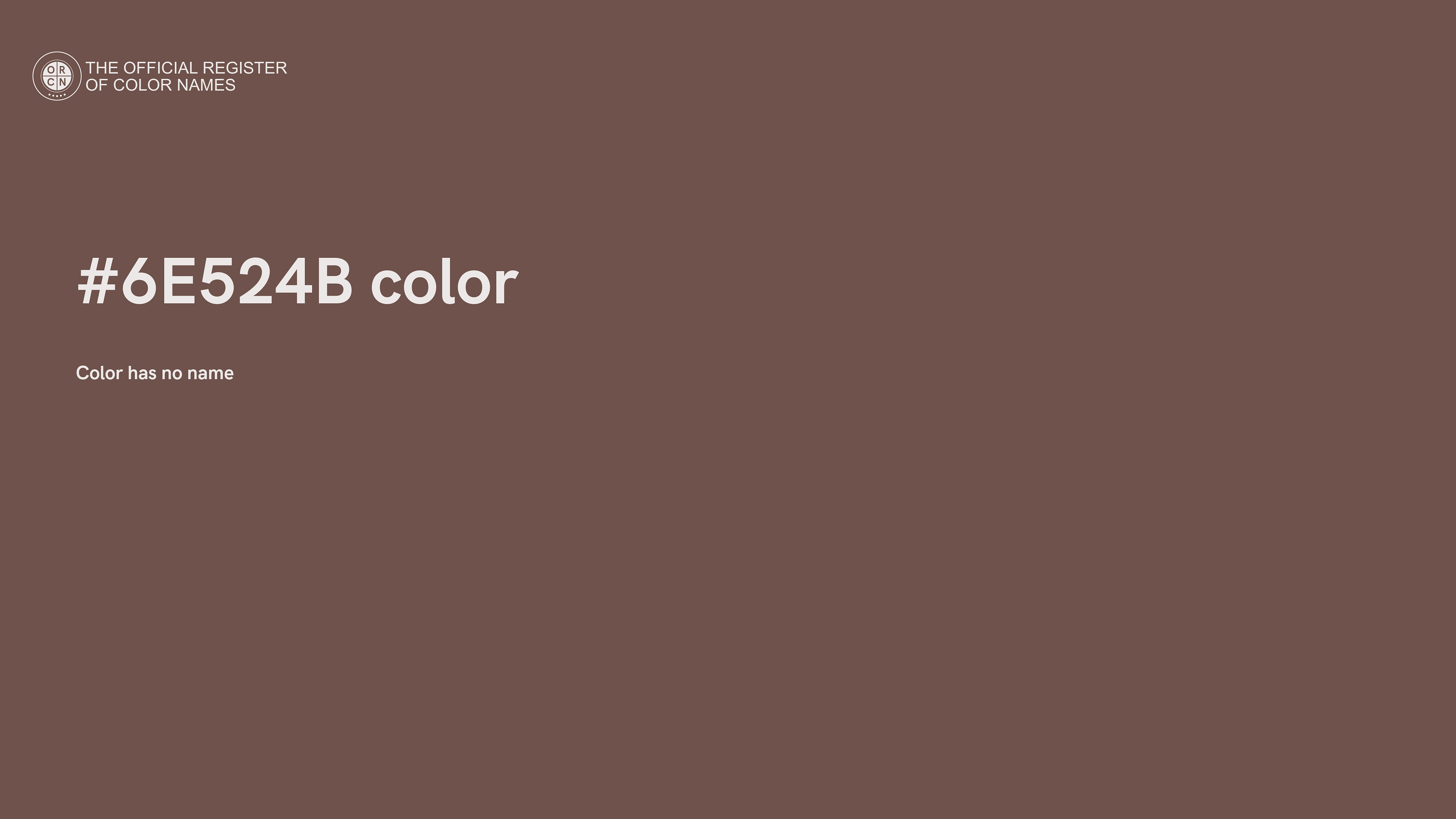 For printing in non digital world, #6E524B is represented in CMYK as 0 Cyan, 11 Magenta, 14 Yellow, and 57 Black (Key) (C:0 M:11 Y:14 K:57).
