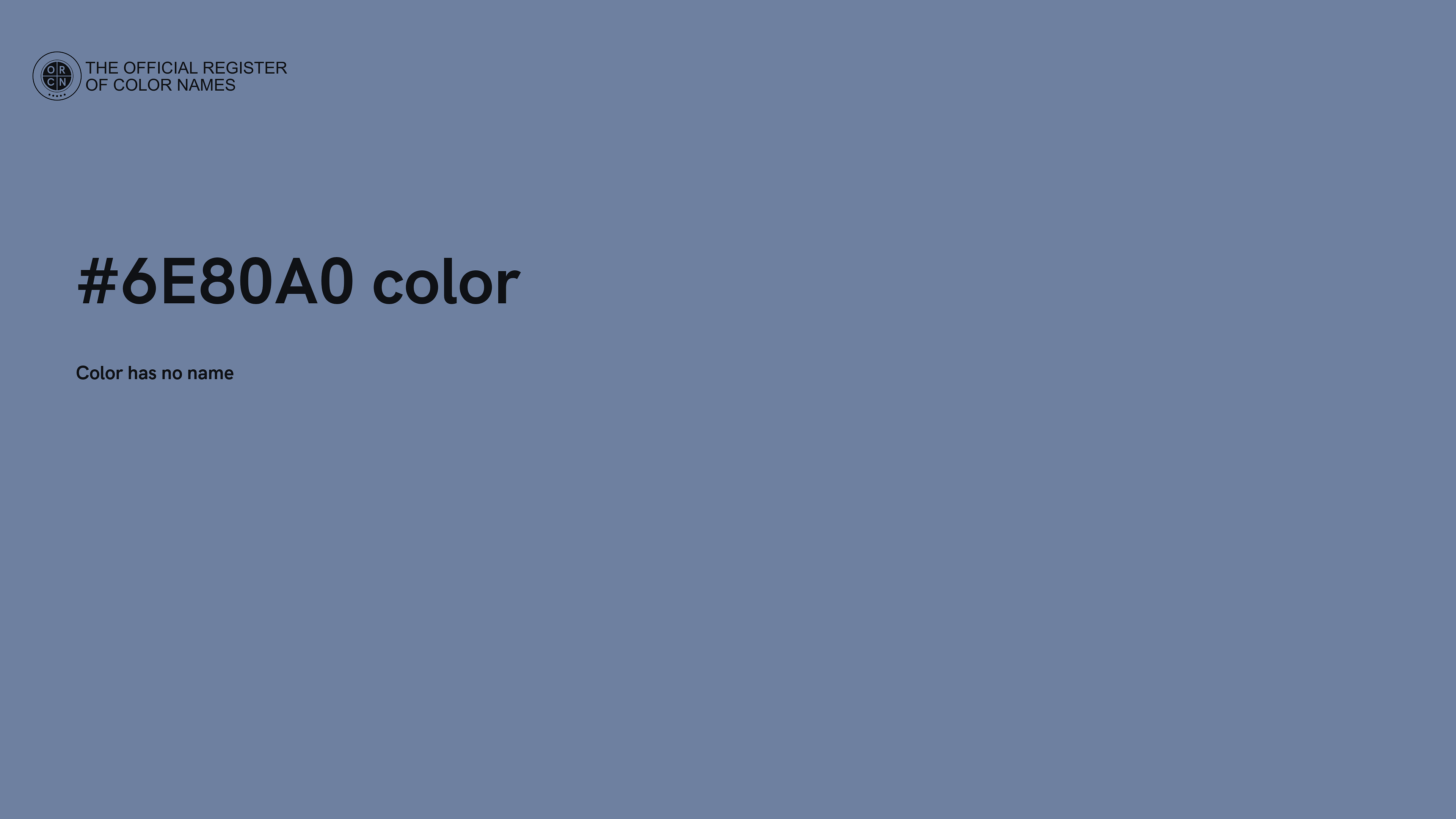 The digital color HEX #6E80A0 belongs to the Azure Color Family featuring Low Saturation (Saturation Family) and Light (Brightness Family).