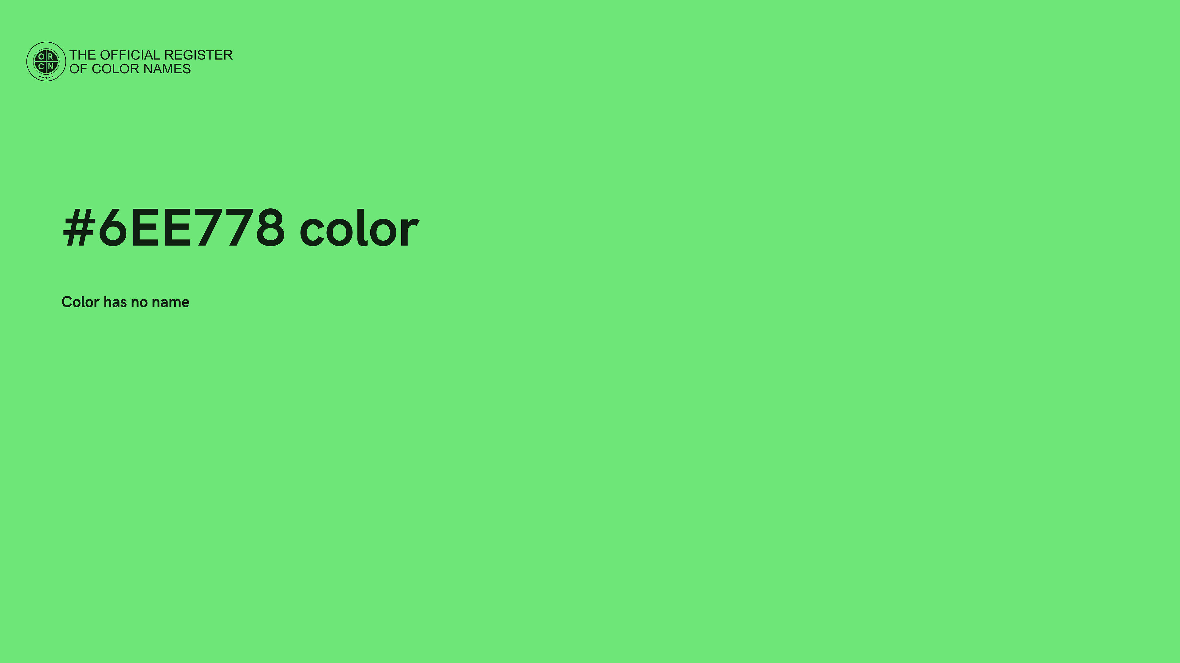 The digital color HEX #6EE778 belongs to the Green Color Family featuring High Saturation (Saturation Family) and Very Light (Brightness Family).