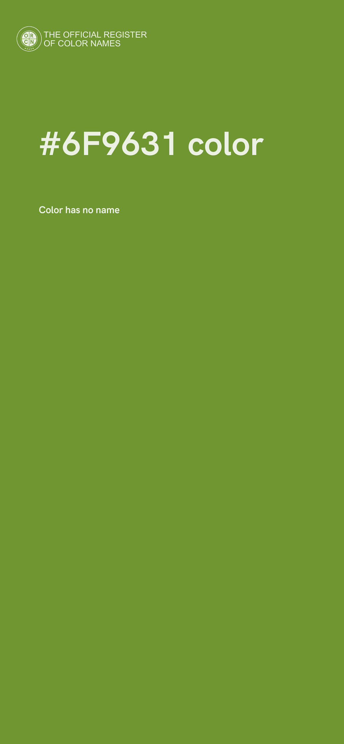 The digital color HEX #6F9631 belongs to the Chartreuse Color Family featuring Moderate Saturation (Saturation Family) and Neutral (Brightness Family).
