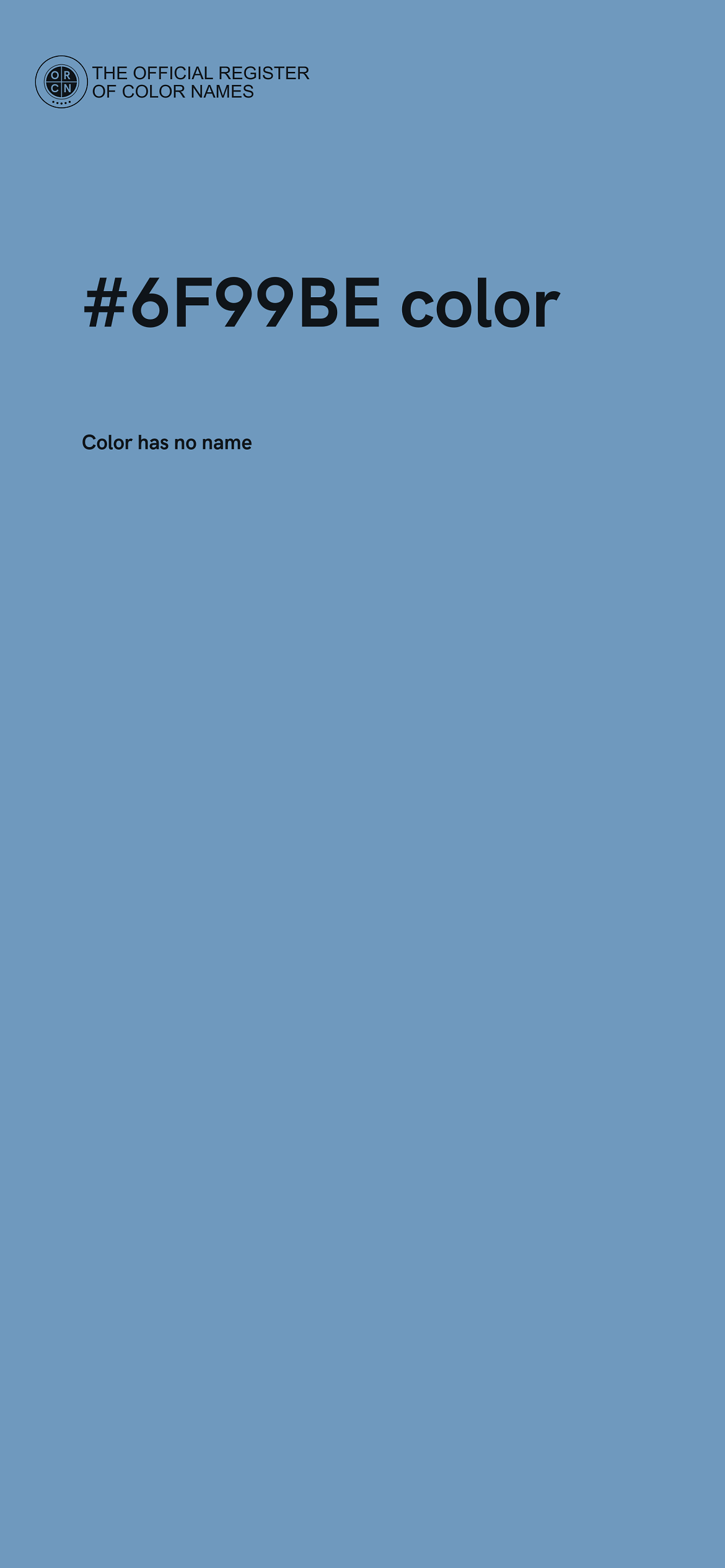 The digital color HEX #6F99BE belongs to the Azure Color Family featuring Mild Saturation (Saturation Family) and Light (Brightness Family).