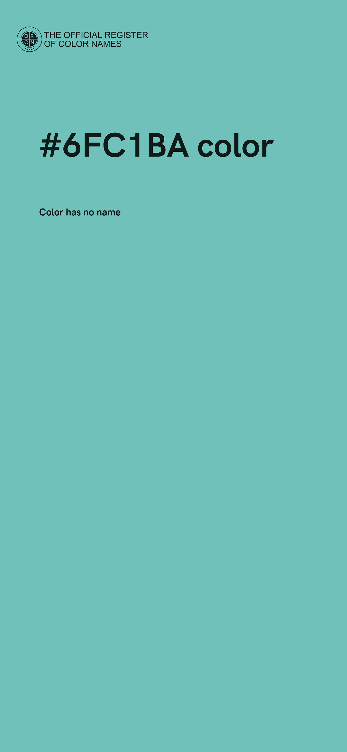 For printing in non digital world, #6FC1BA is represented in CMYK as 32 Cyan, 0 Magenta, 3 Yellow, and 24 Black (Key) (C:32 M:0 Y:3 K:24).