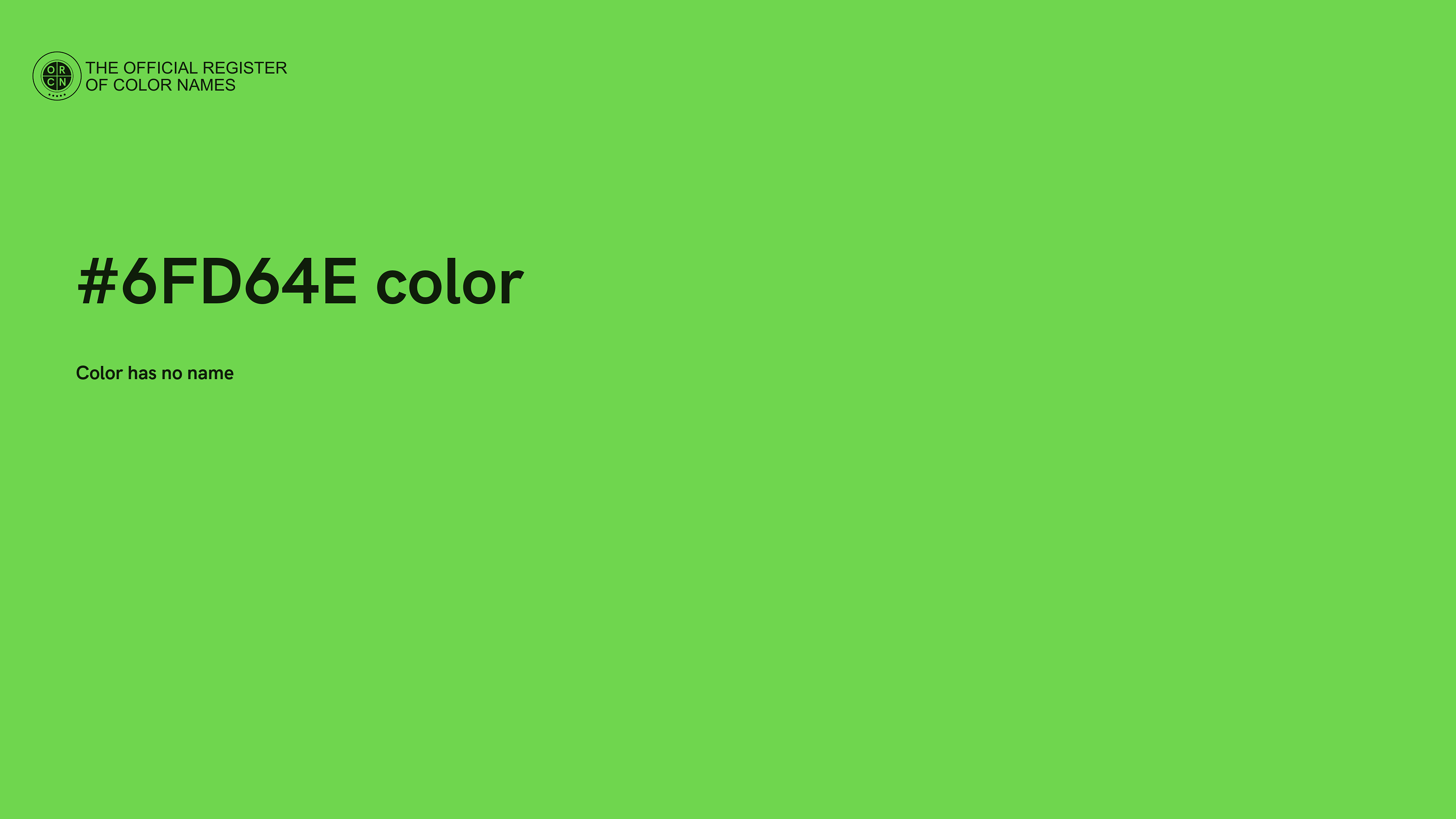 The digital color HEX #6FD64E belongs to the Green Color Family featuring High Saturation (Saturation Family) and Light (Brightness Family).