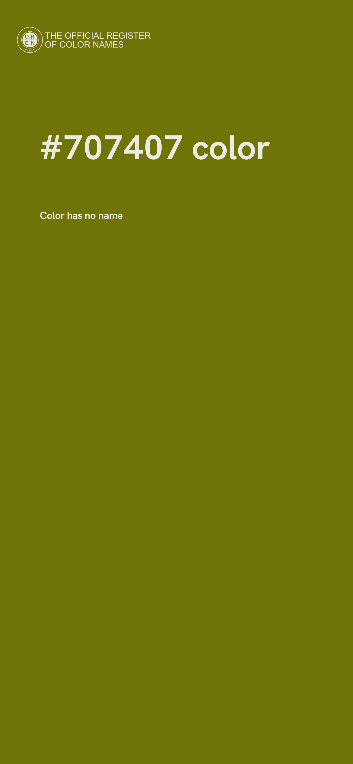 For printing in non digital world, #707407 is represented in CMYK as 2 Cyan, 0 Magenta, 43 Yellow, and 55 Black (Key) (C:2 M:0 Y:43 K:55).