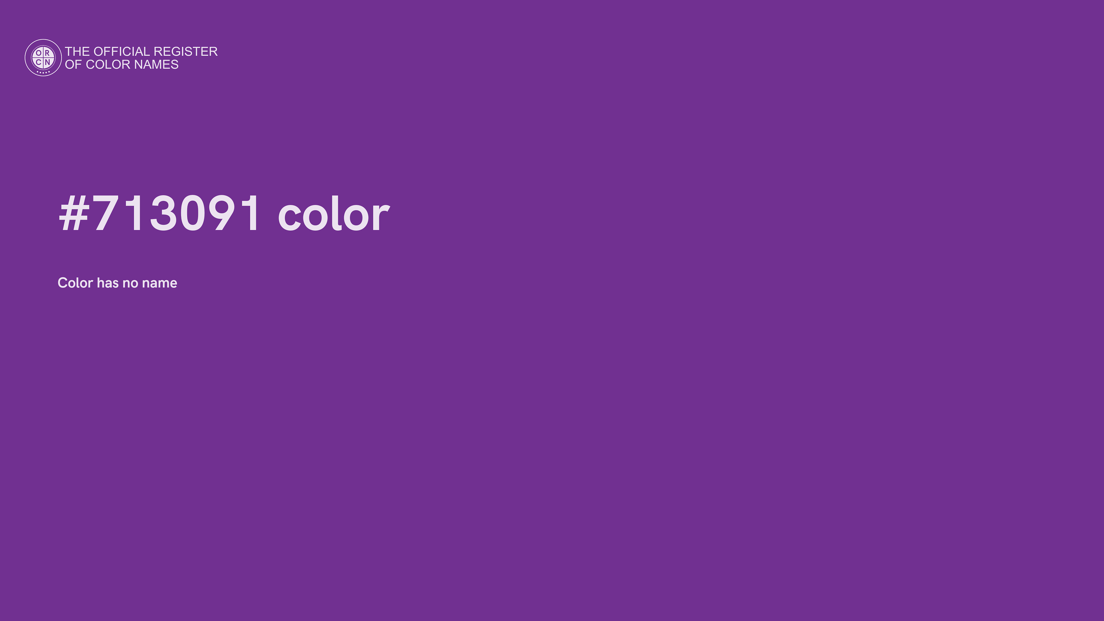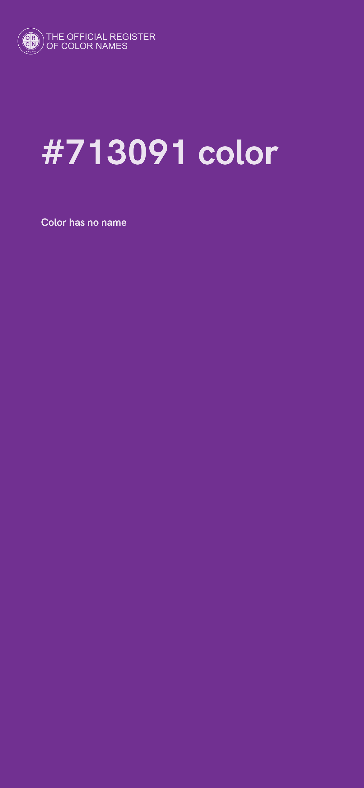The digital color HEX #713091 belongs to the Violet Color Family featuring Moderate Saturation (Saturation Family) and Neutral (Brightness Family).