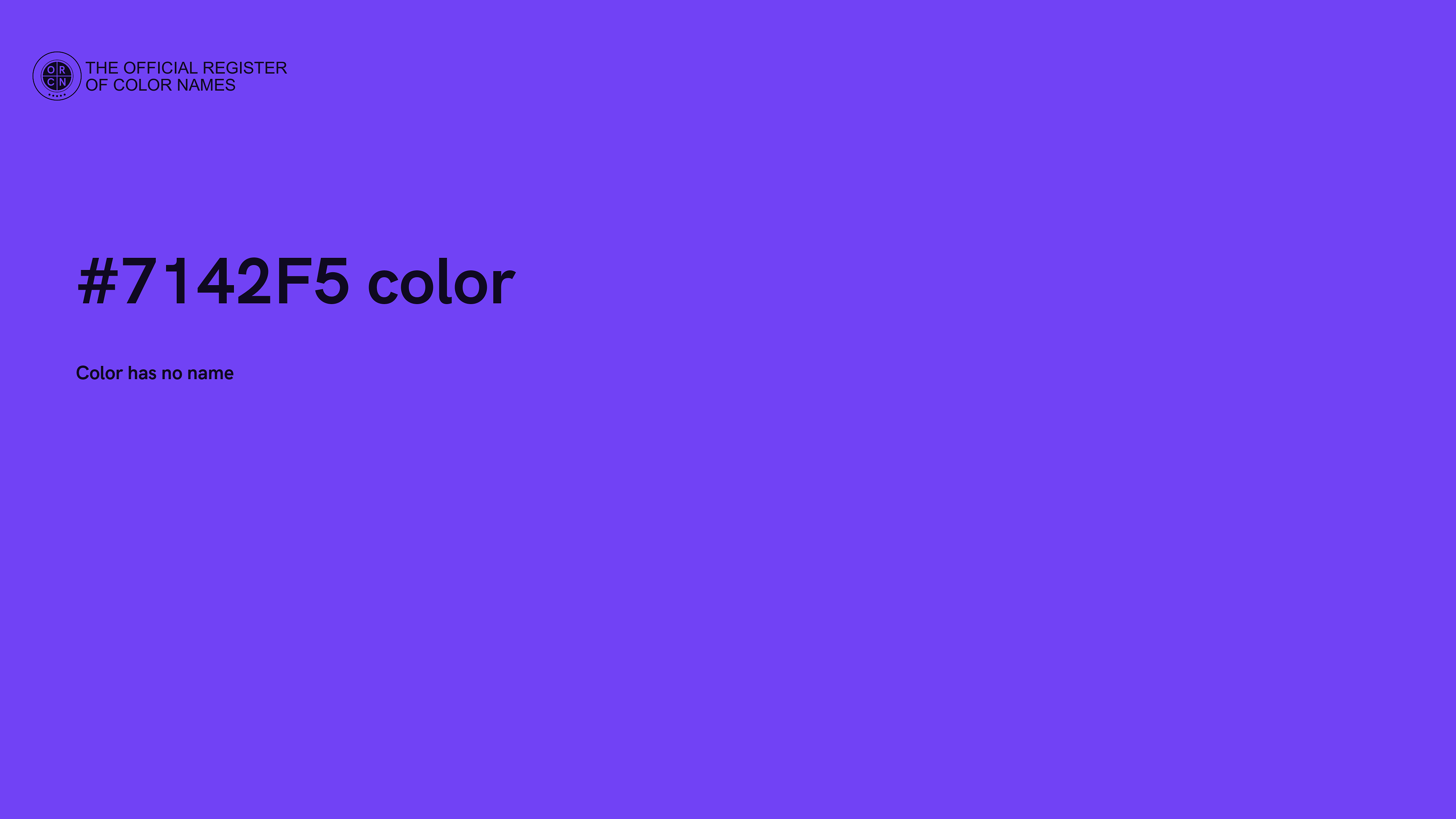 The digital color HEX #7142F5 belongs to the Violet Color Family featuring Full Saturation (Saturation Family) and Very Light (Brightness Family).