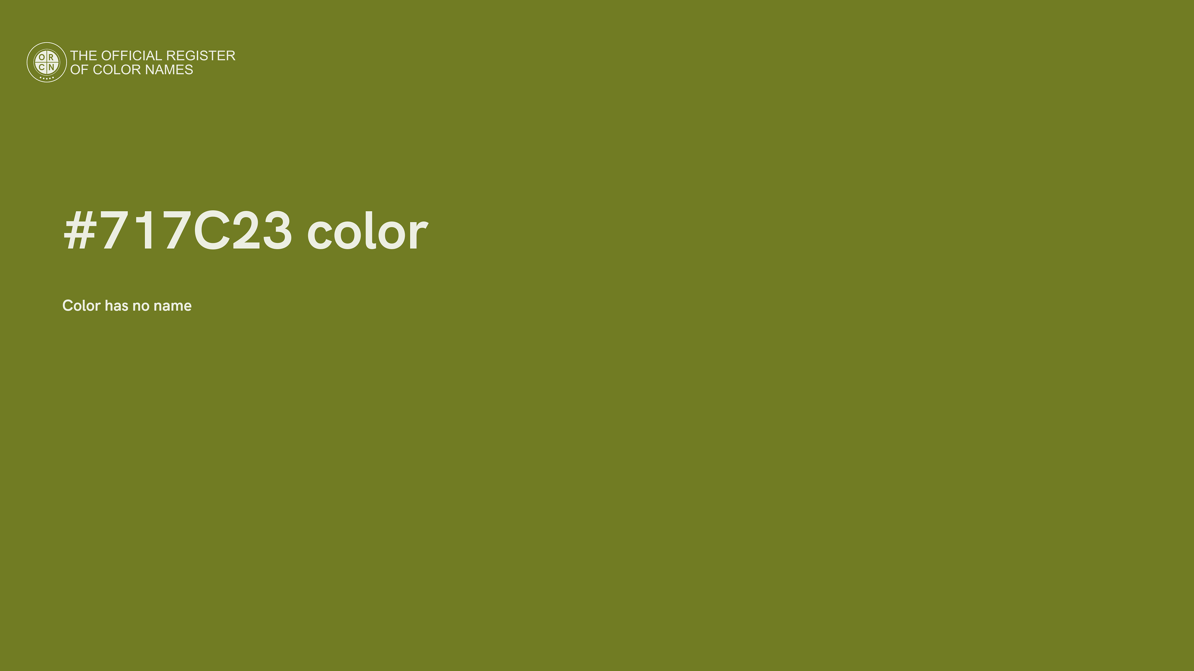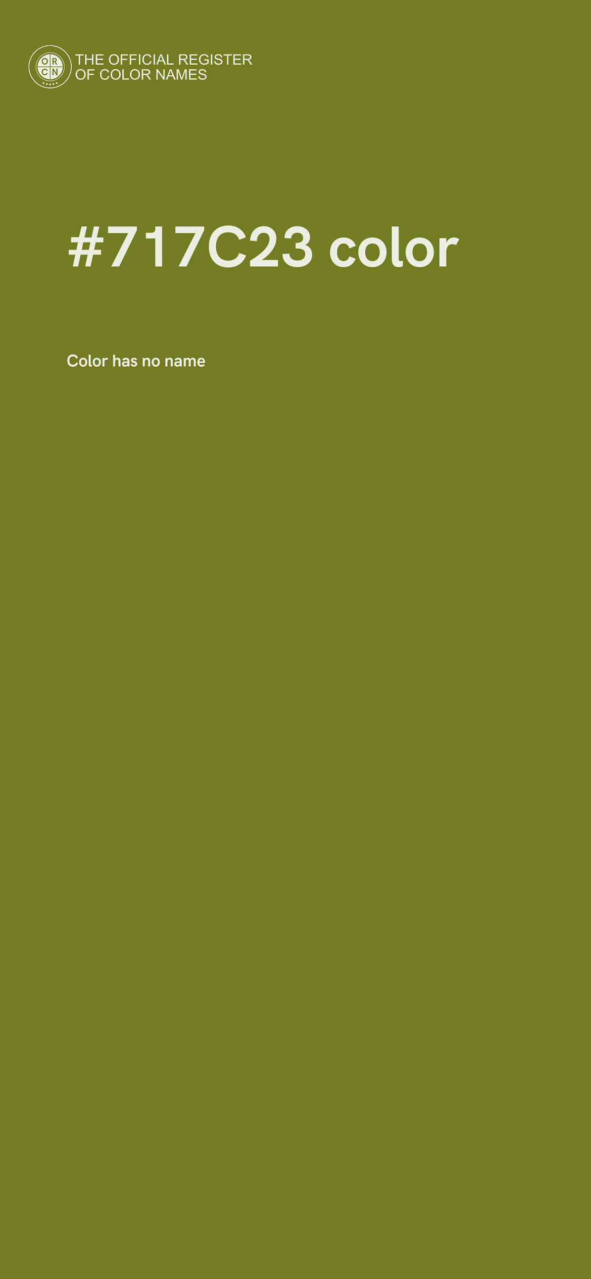 The digital color HEX #717C23 belongs to the Yellow Color Family featuring Moderate Saturation (Saturation Family) and Neutral (Brightness Family).