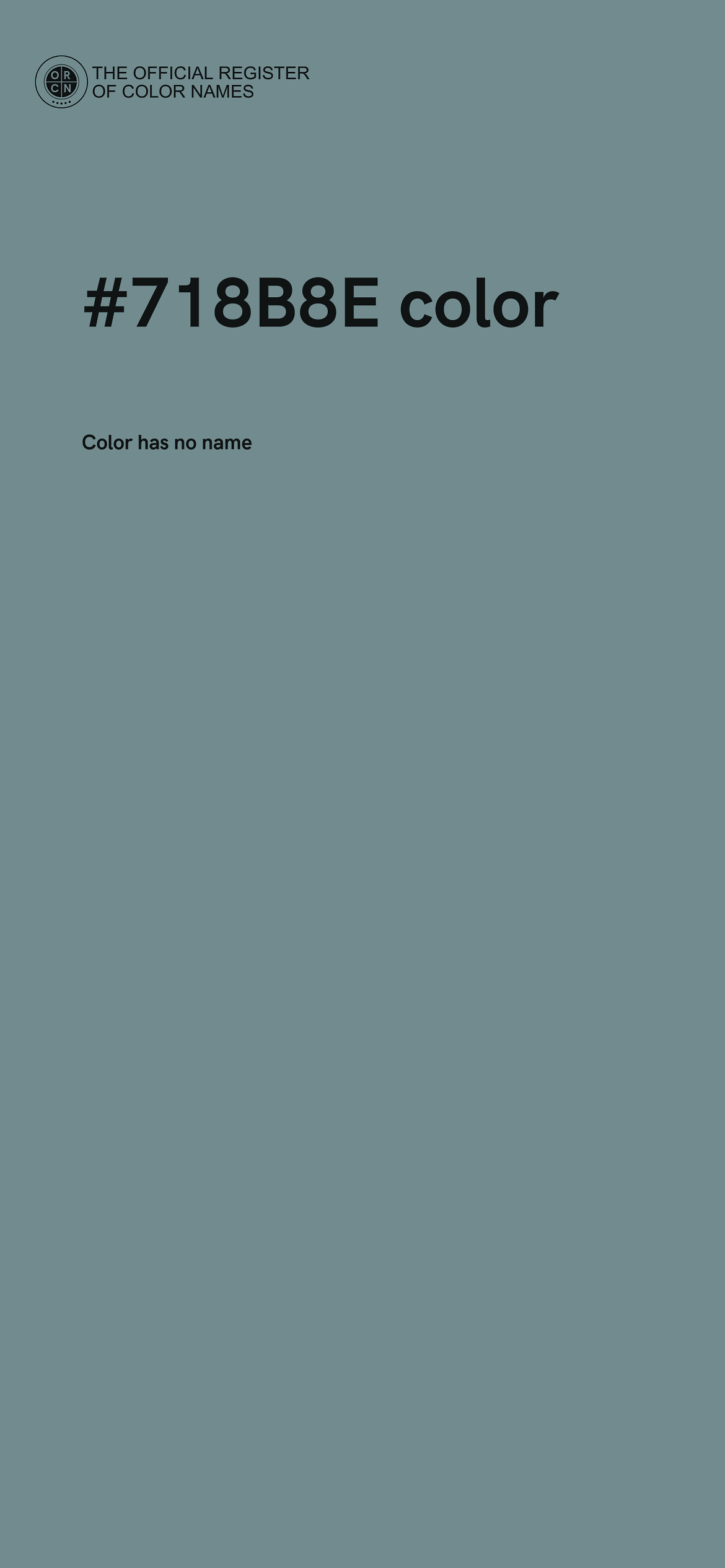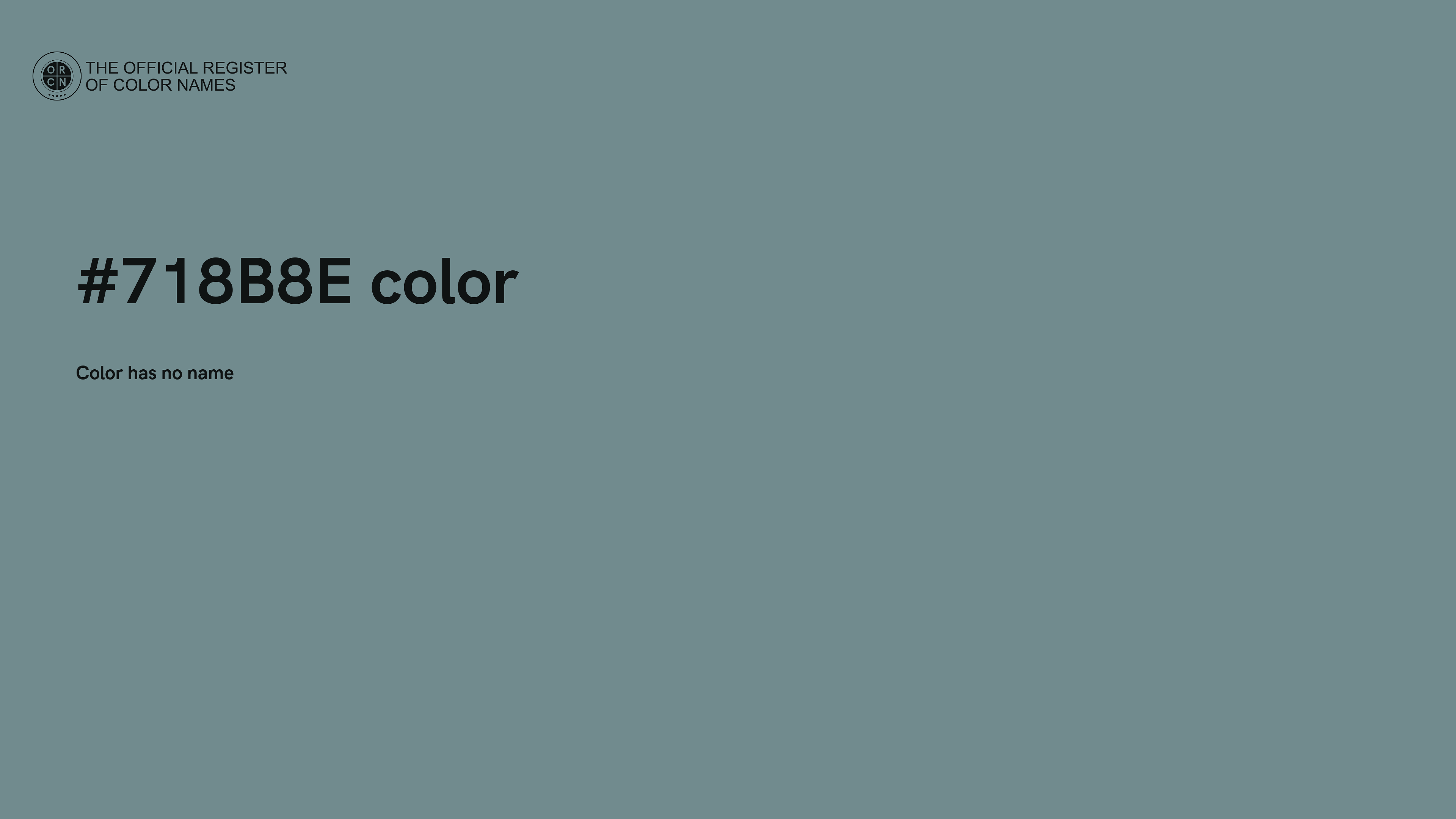 The digital color HEX #718B8E belongs to the Cyan Color Family featuring Low Saturation (Saturation Family) and Light (Brightness Family).