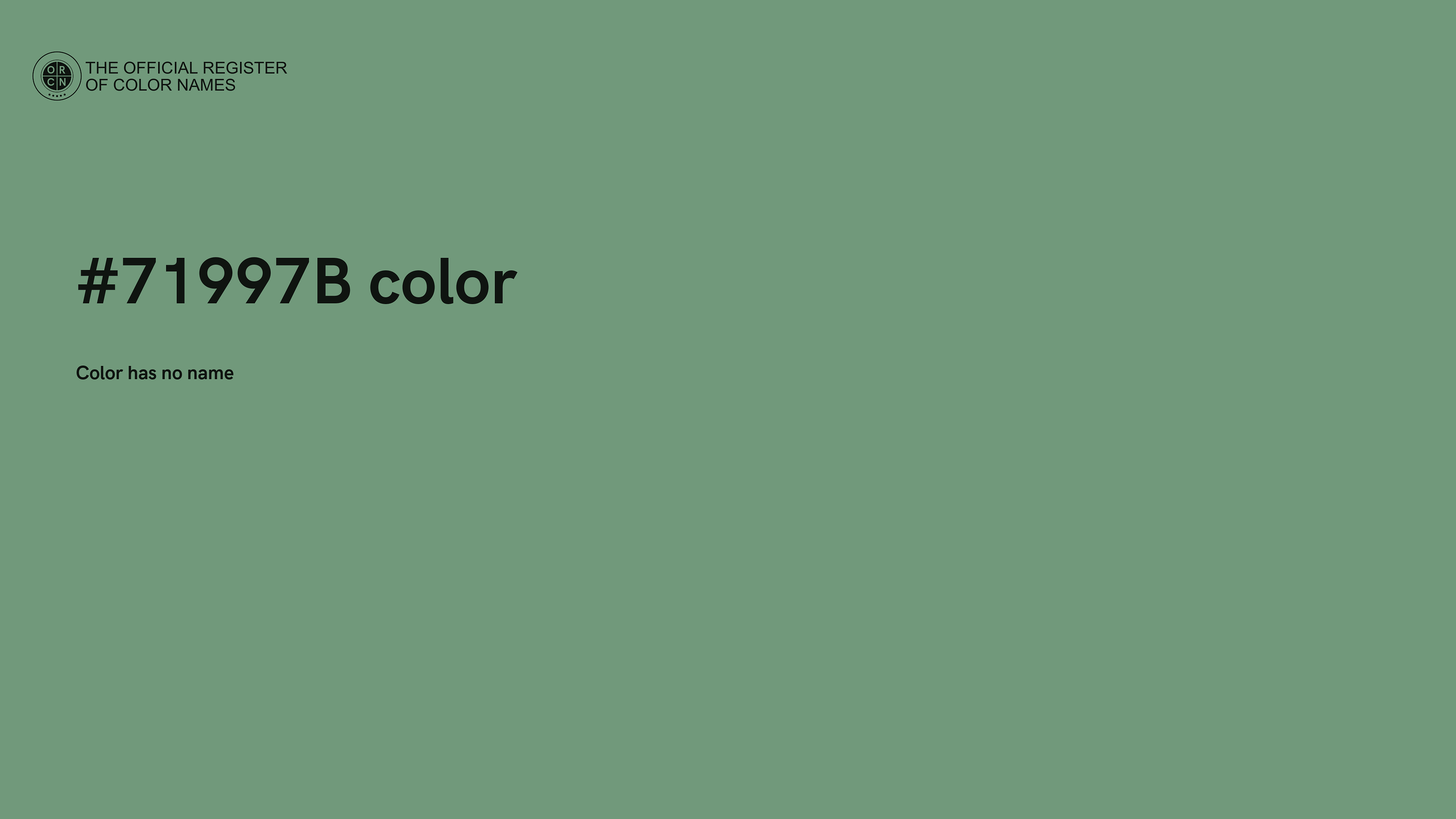 The digital color HEX #71997B belongs to the Spring Green Color Family featuring Low Saturation (Saturation Family) and Light (Brightness Family).