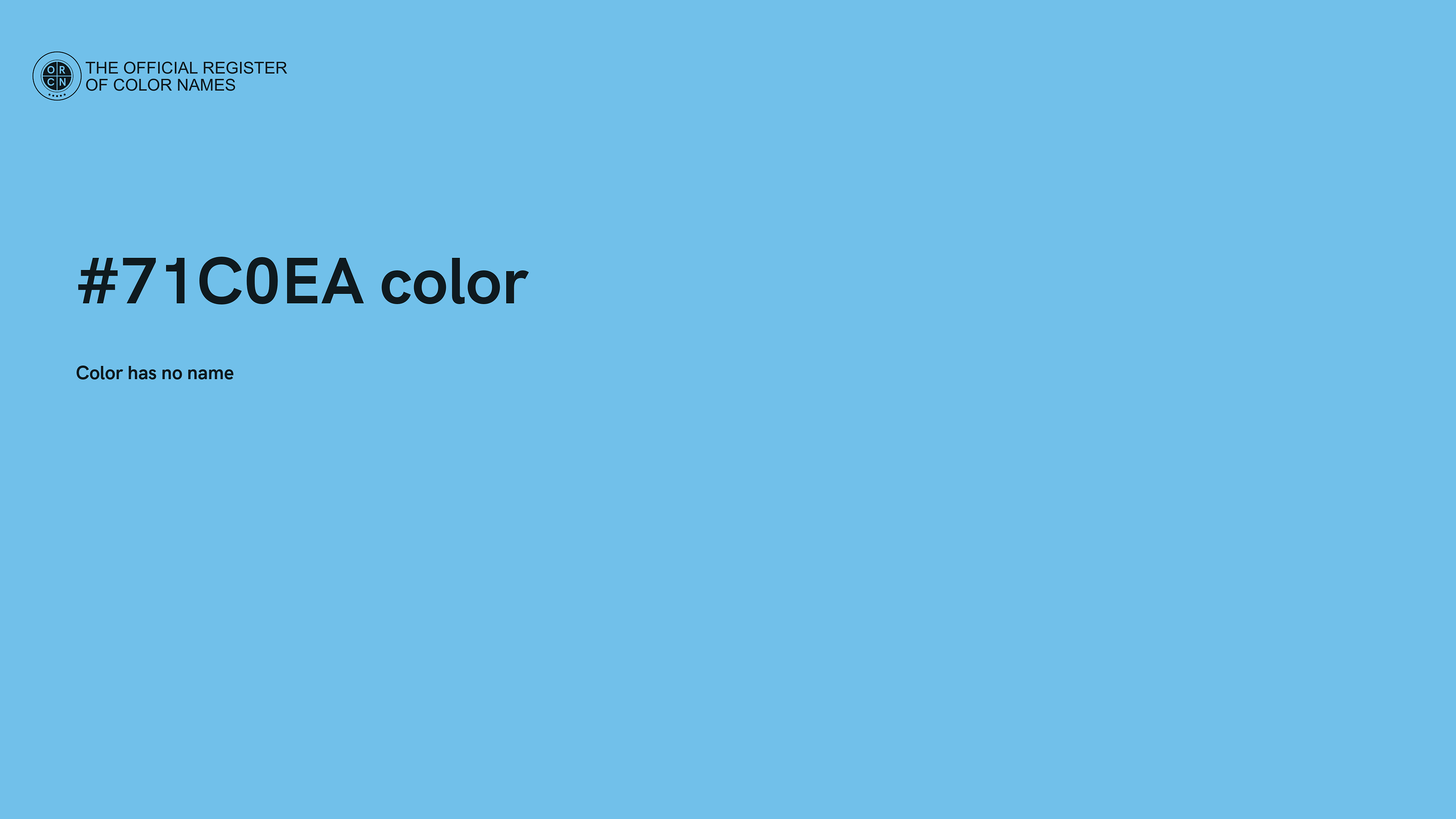 The digital color HEX #71C0EA belongs to the Azure Color Family featuring High Saturation (Saturation Family) and Very Light (Brightness Family).