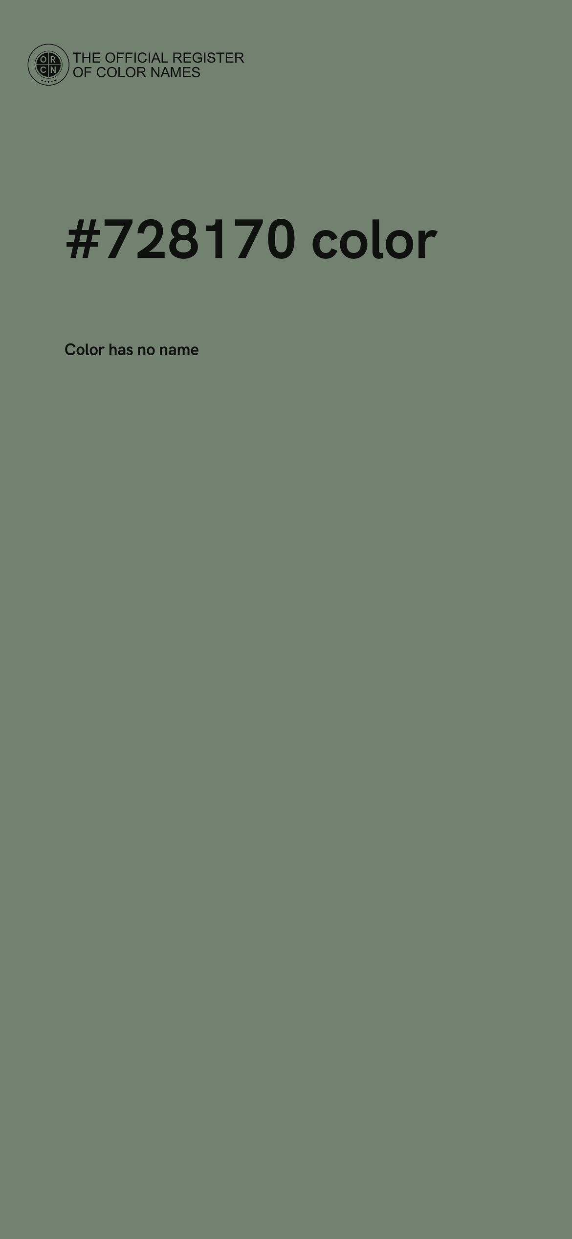 The digital color HEX #728170 belongs to the Green Color Family featuring Desaturated (Saturation Family) and Light (Brightness Family).