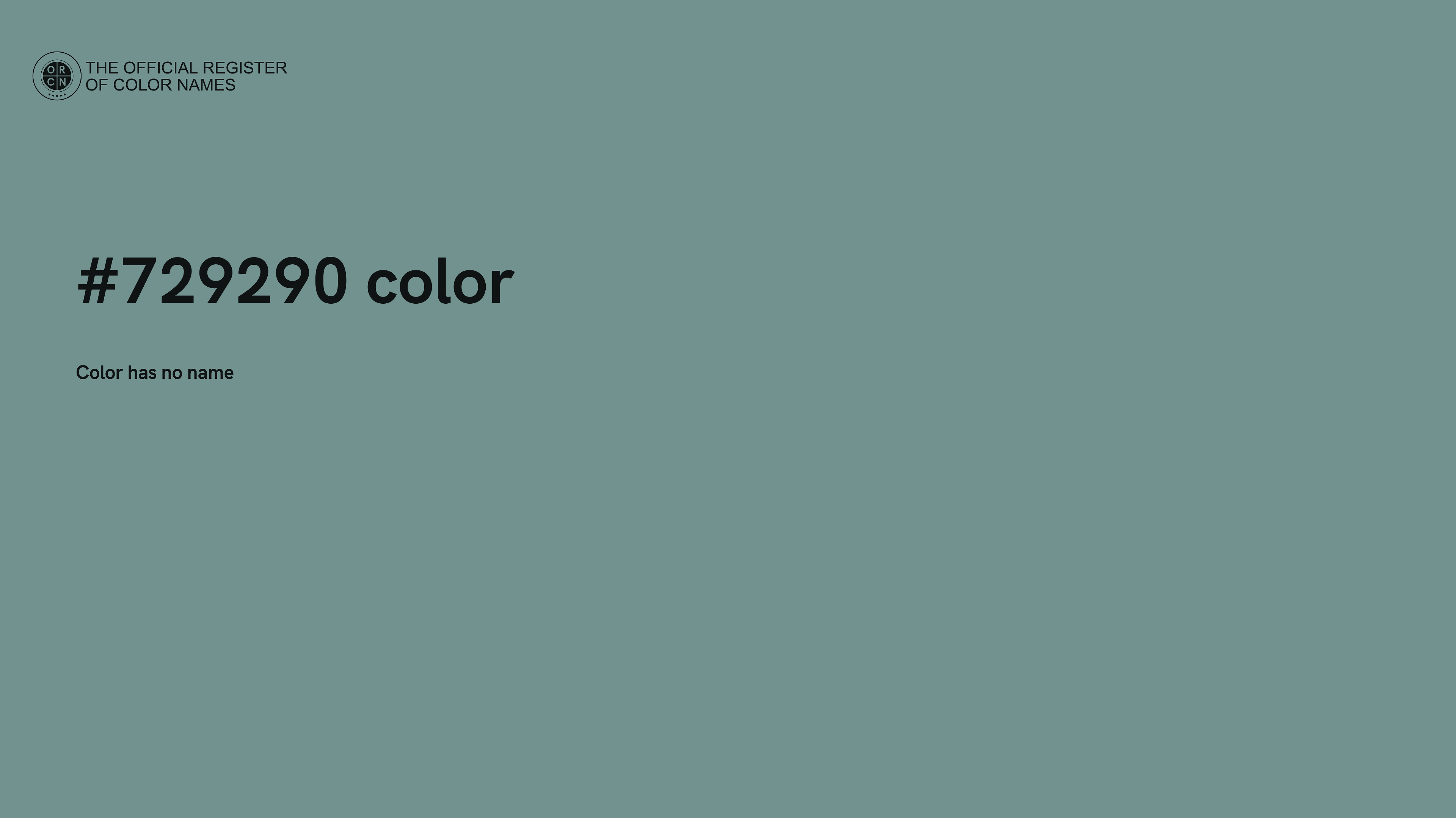 For printing in non digital world, #729290 is represented in CMYK as 13 Cyan, 0 Magenta, 1 Yellow, and 43 Black (Key) (C:13 M:0 Y:1 K:43).