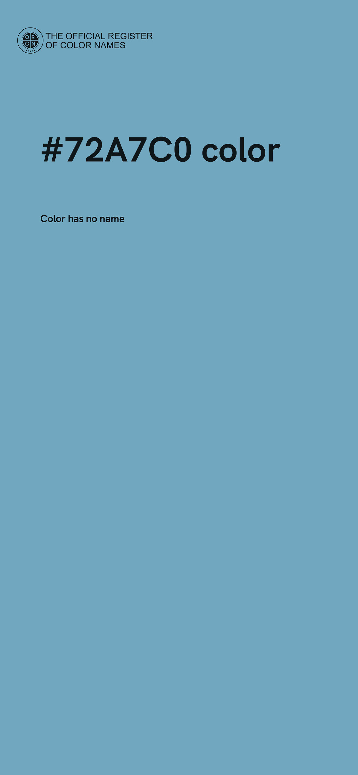 The digital color HEX #72A7C0 belongs to the Azure Color Family featuring Mild Saturation (Saturation Family) and Very Light (Brightness Family).