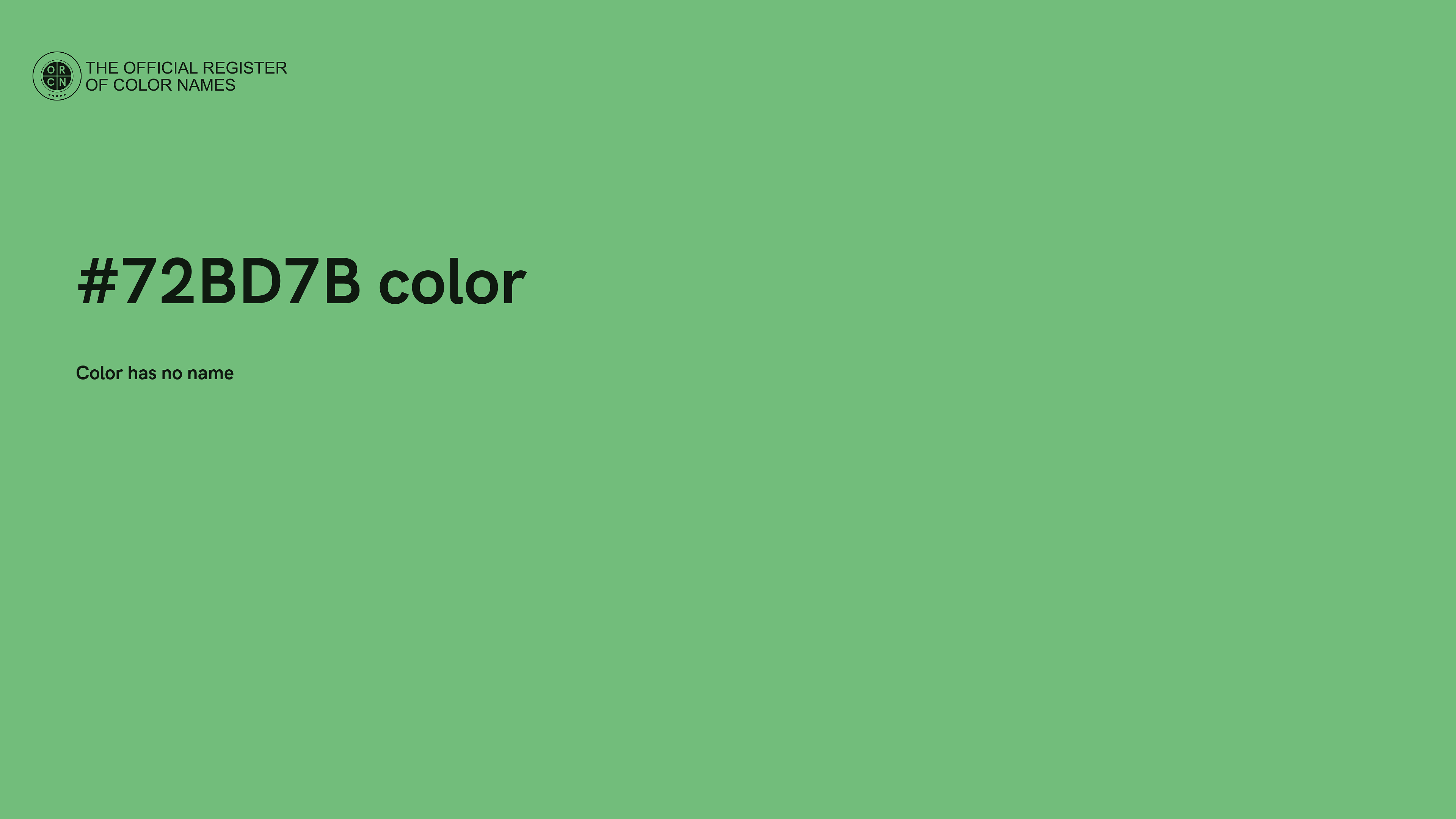 The digital color HEX #72BD7B belongs to the Green Color Family featuring Mild Saturation (Saturation Family) and Light (Brightness Family).