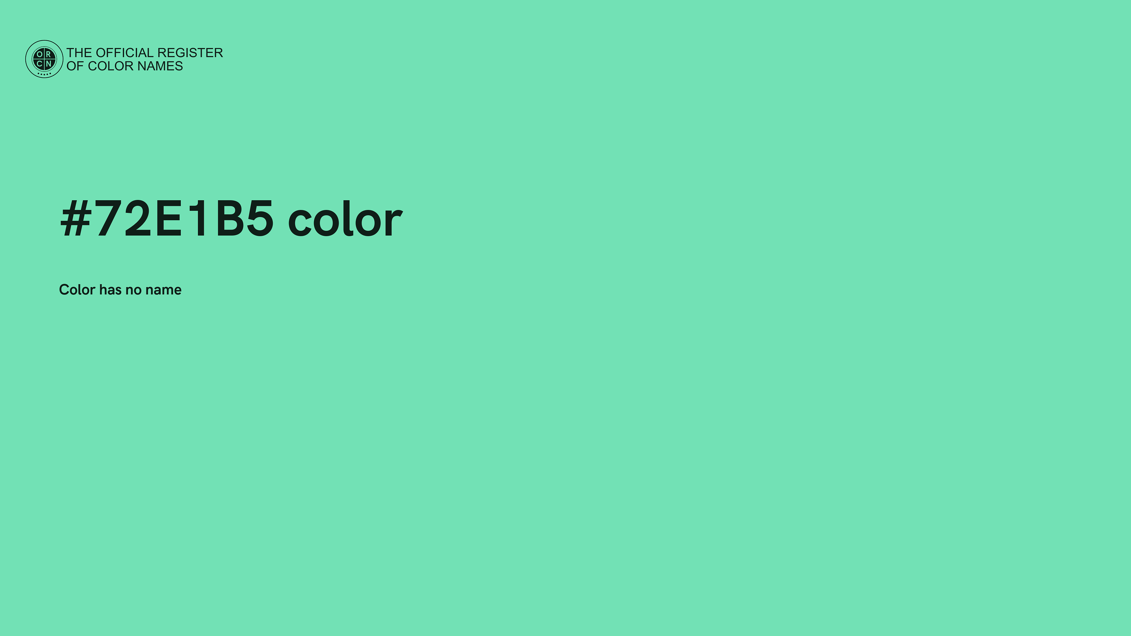 The digital color HEX #72E1B5 belongs to the Spring Green Color Family featuring High Saturation (Saturation Family) and Very Light (Brightness Family).
