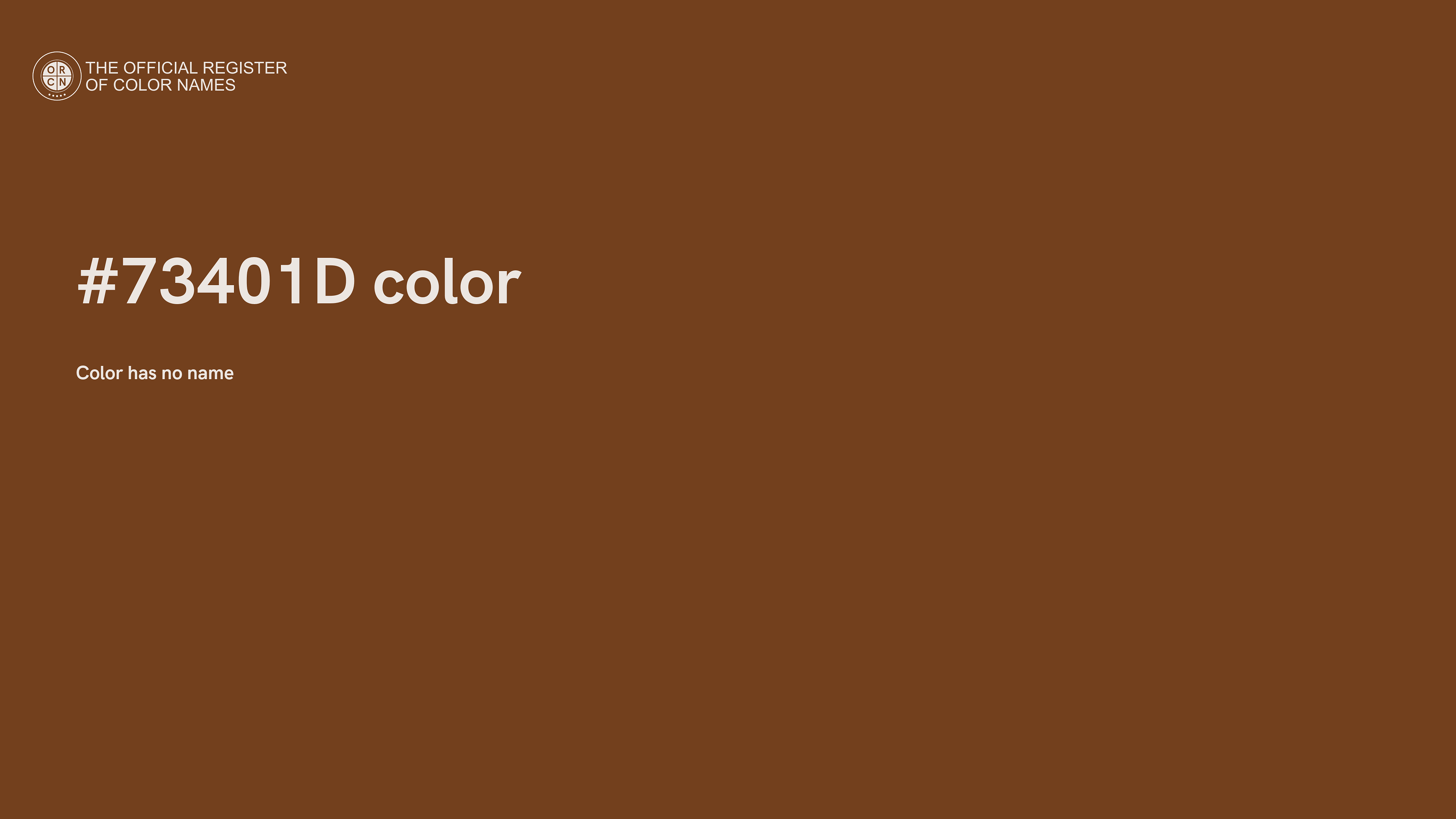 The digital color HEX #73401D belongs to the Orange Color Family featuring High Saturation (Saturation Family) and Neutral (Brightness Family).