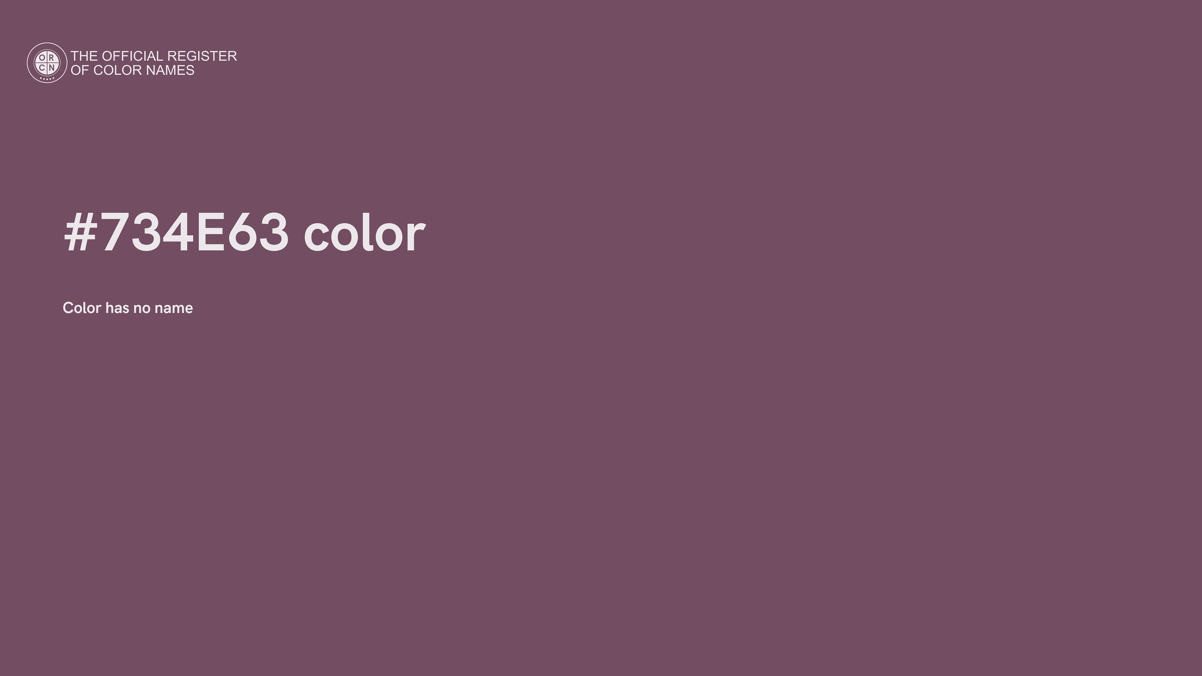 For printing in non digital world, #734E63 is represented in CMYK as 0 Cyan, 15 Magenta, 6 Yellow, and 55 Black (Key) (C:0 M:15 Y:6 K:55).