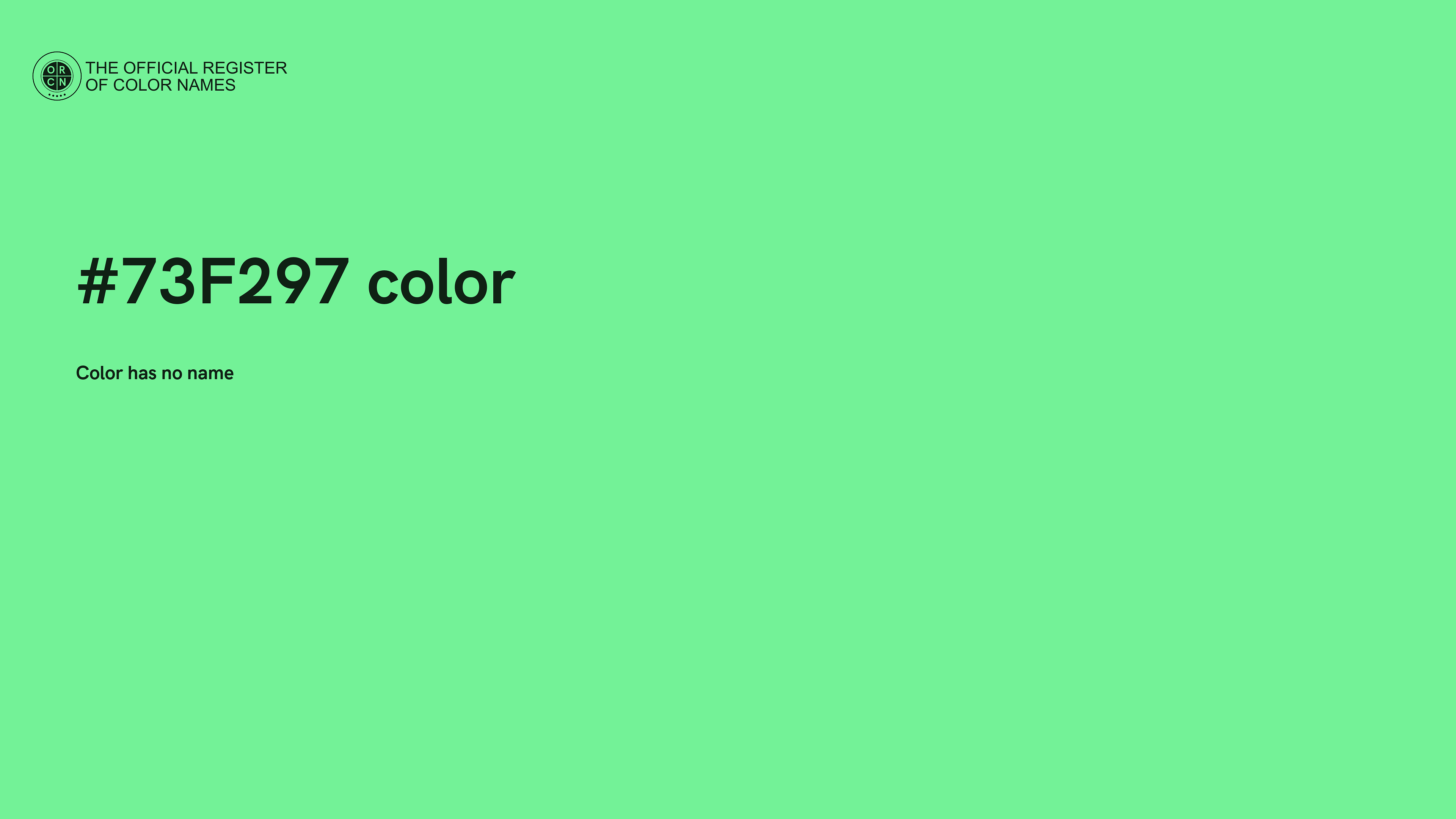 For printing in non digital world, #73F297 is represented in CMYK as 50 Cyan, 0 Magenta, 36 Yellow, and 5 Black (Key) (C:50 M:0 Y:36 K:5).