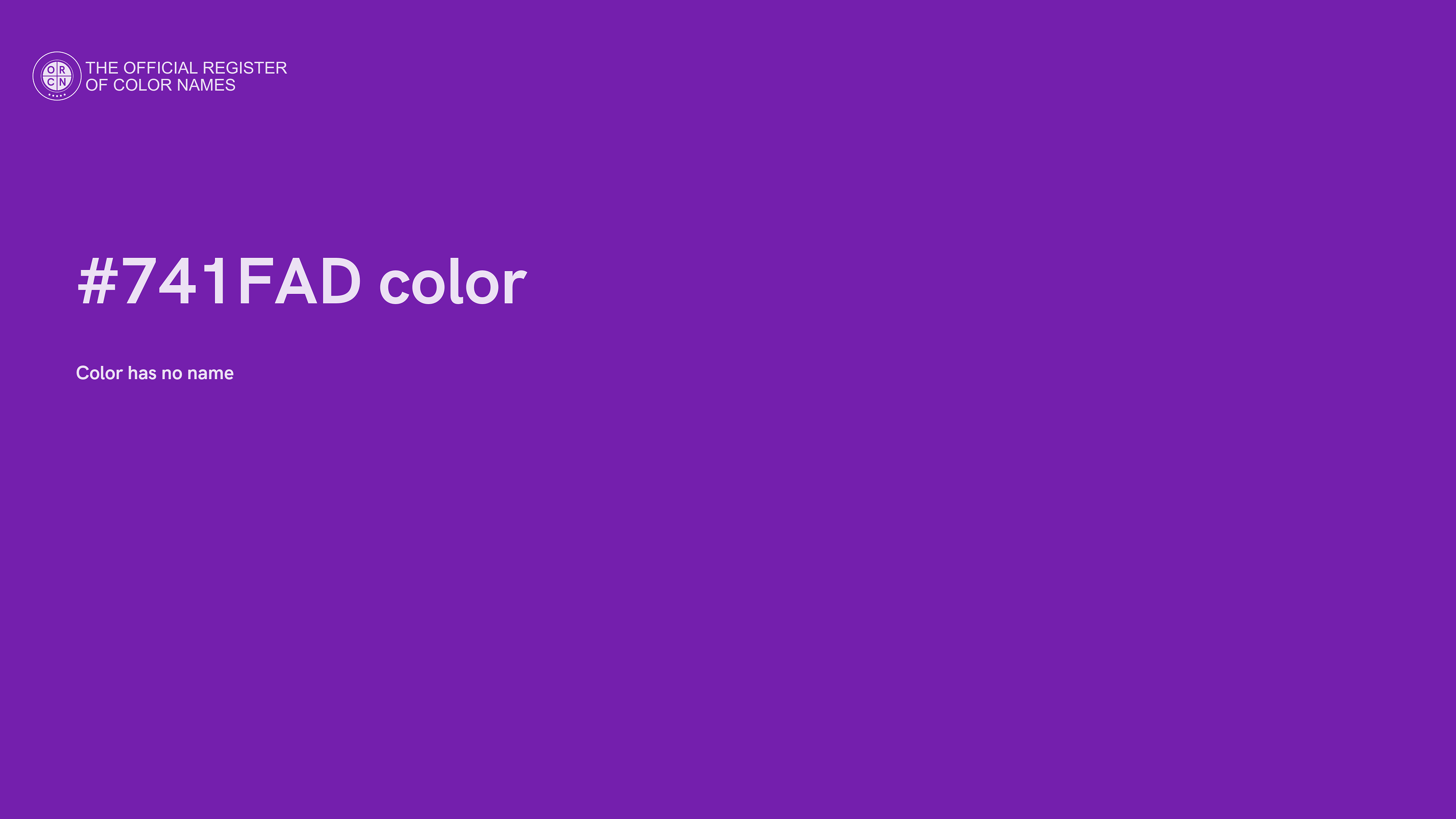 The digital color HEX #741FAD belongs to the Violet Color Family featuring High Saturation (Saturation Family) and Light (Brightness Family).