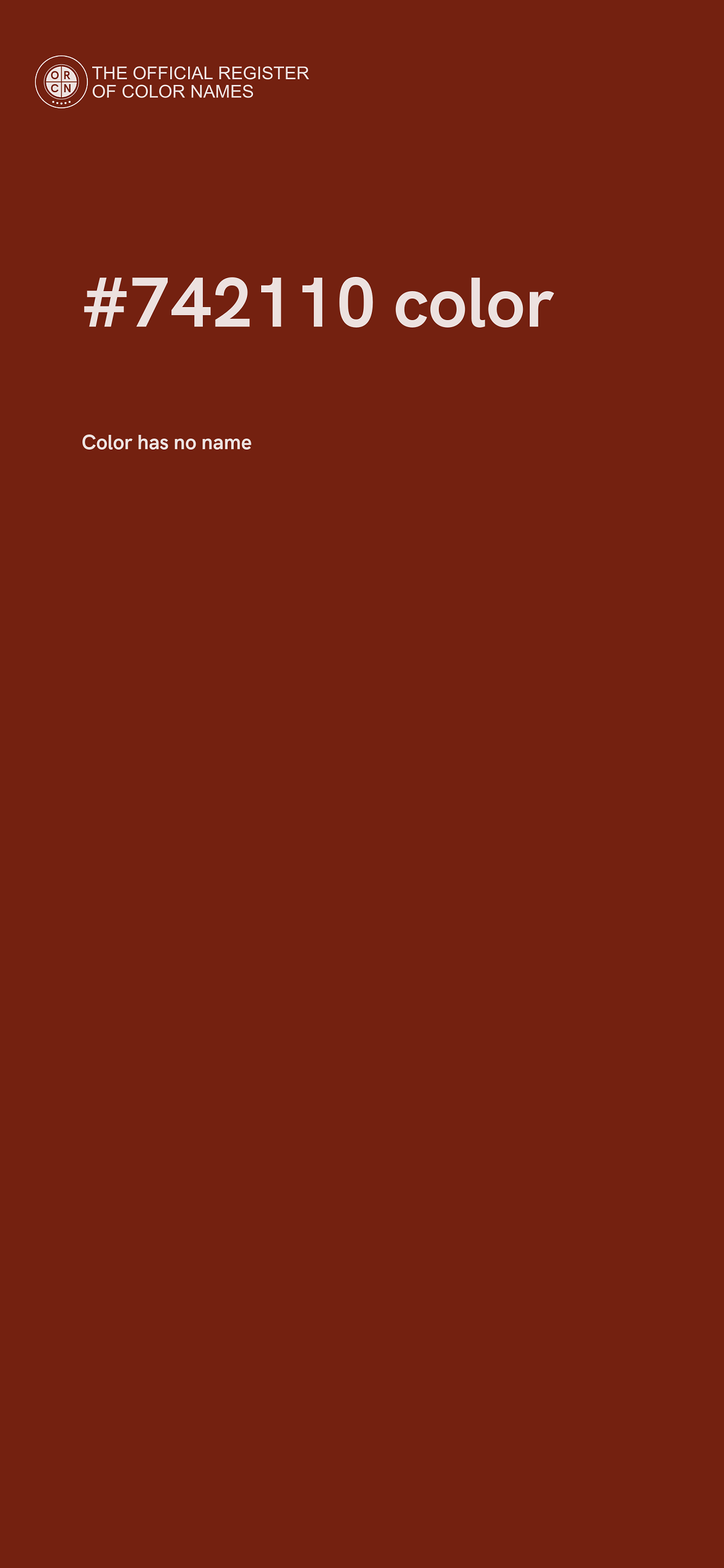 The digital color HEX #742110 belongs to the Red Color Family featuring High Saturation (Saturation Family) and Neutral (Brightness Family).