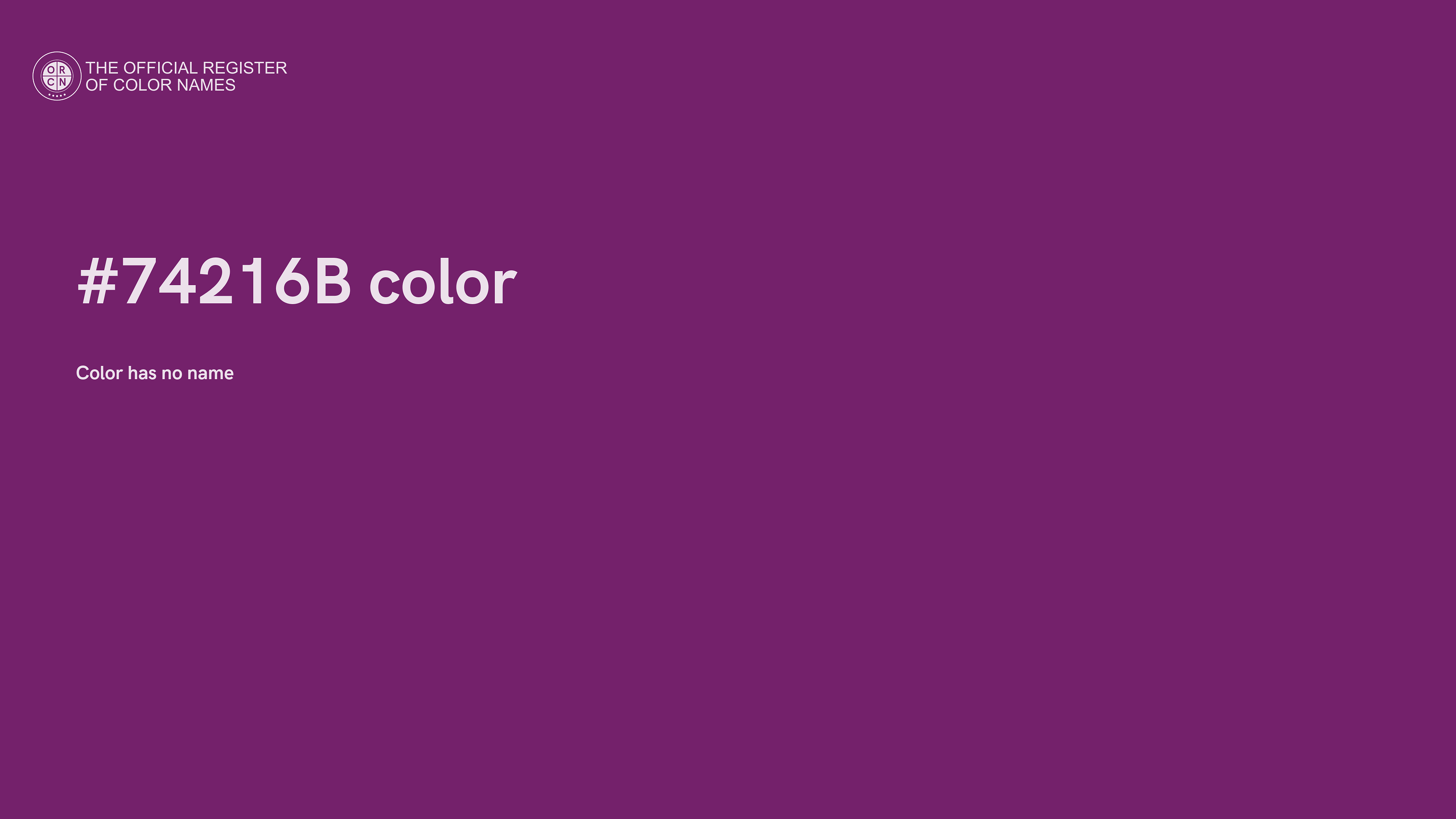 The digital color HEX #74216B belongs to the Magenta Color Family featuring Moderate Saturation (Saturation Family) and Neutral (Brightness Family).