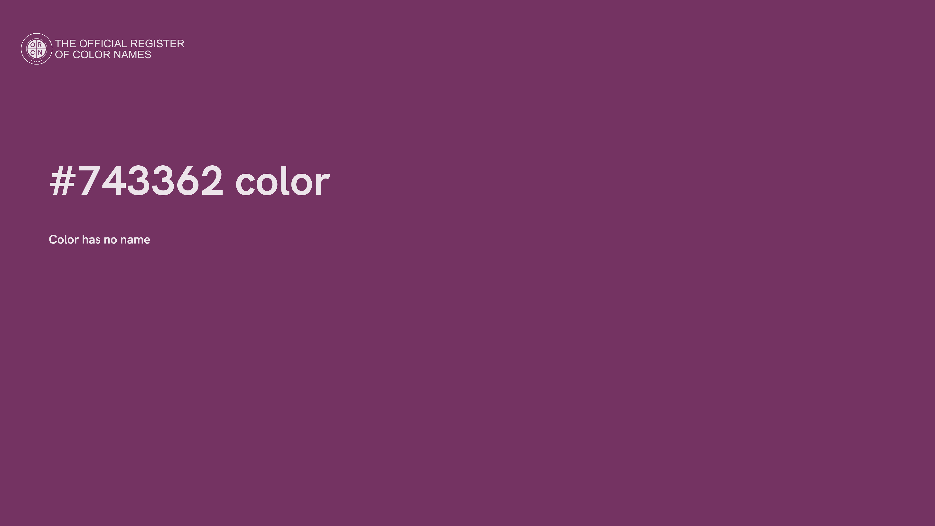 The digital color HEX #743362 belongs to the Rose Color Family featuring Mild Saturation (Saturation Family) and Neutral (Brightness Family).