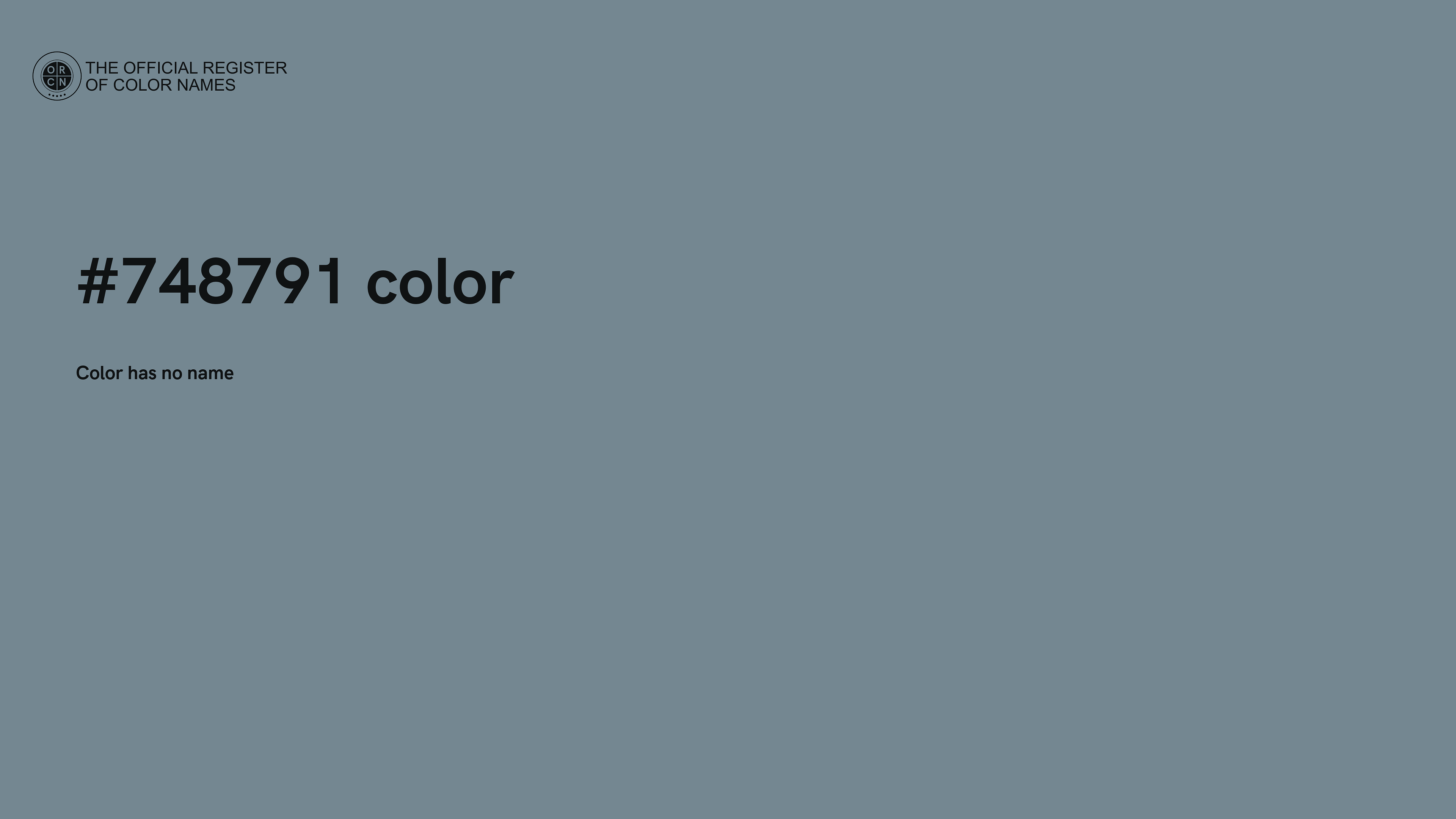 For printing in non digital world, #748791 is represented in CMYK as 11 Cyan, 4 Magenta, 0 Yellow, and 43 Black (Key) (C:11 M:4 Y:0 K:43).