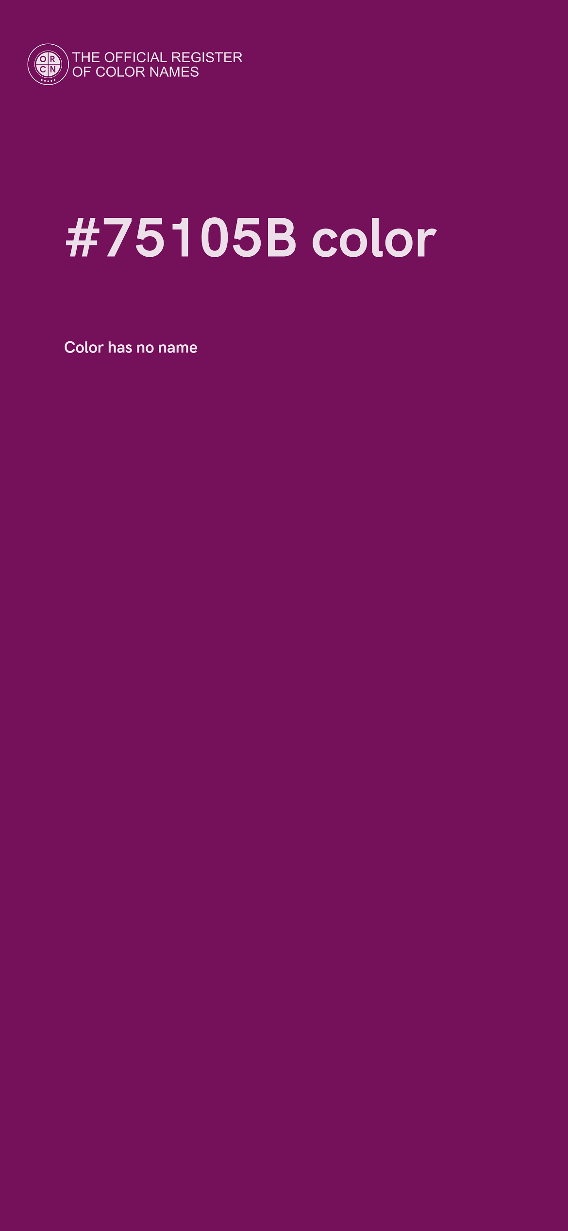 For printing in non digital world, #75105B is represented in CMYK as 0 Cyan, 40 Magenta, 10 Yellow, and 54 Black (Key) (C:0 M:40 Y:10 K:54).