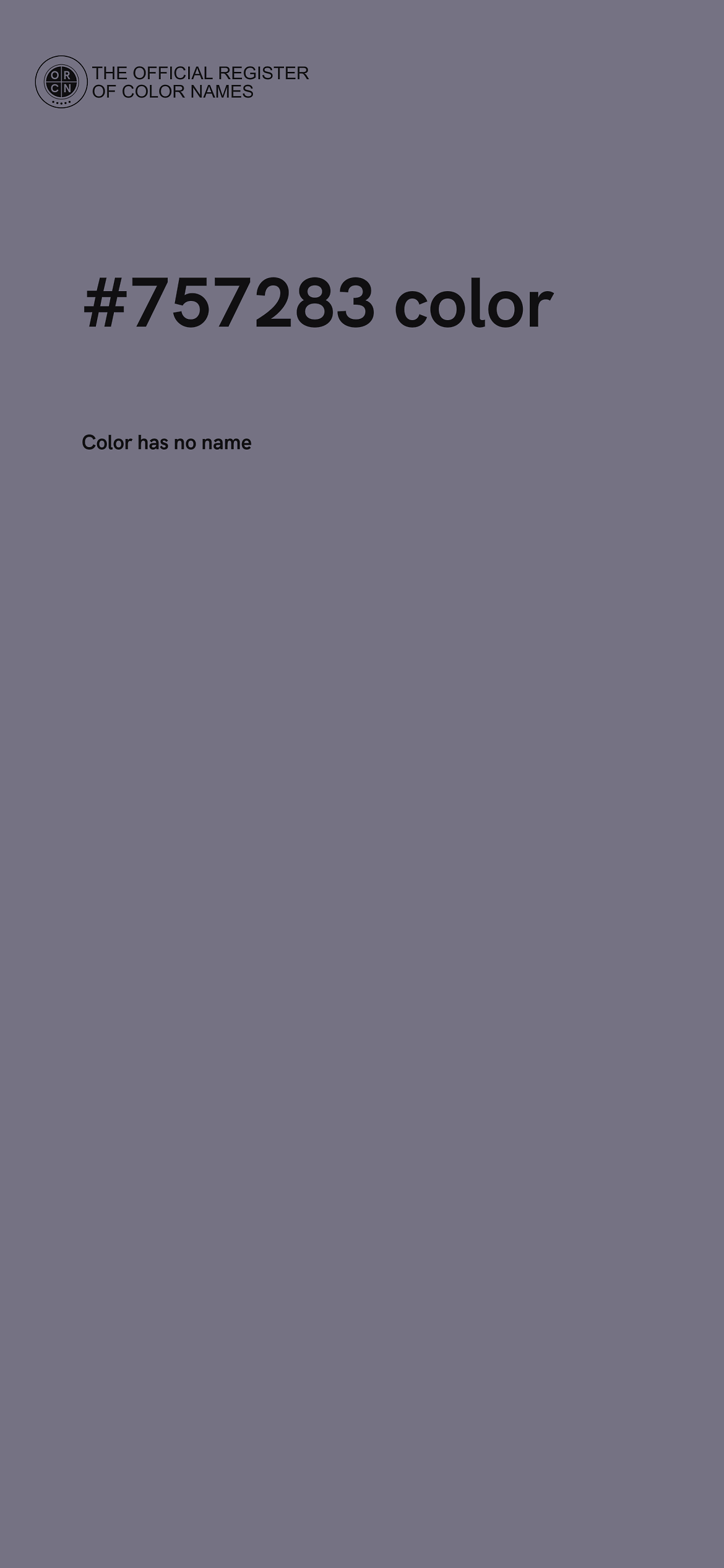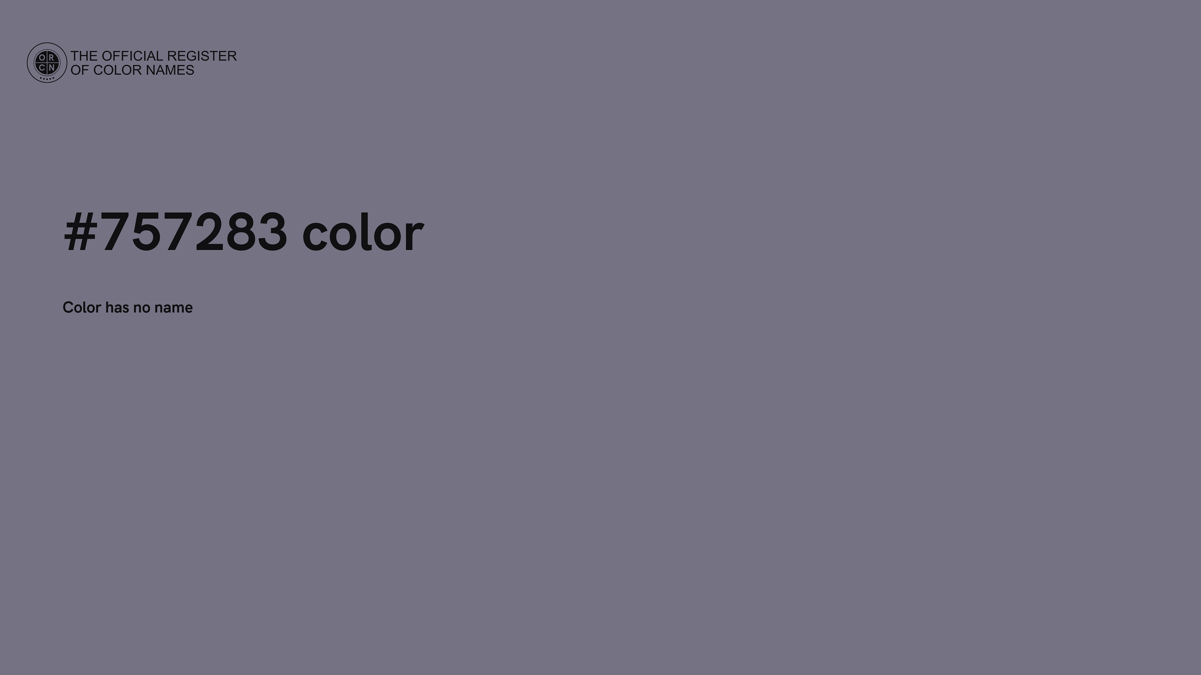 The digital color HEX #757283 belongs to the Blue Color Family featuring Desaturated (Saturation Family) and Light (Brightness Family).