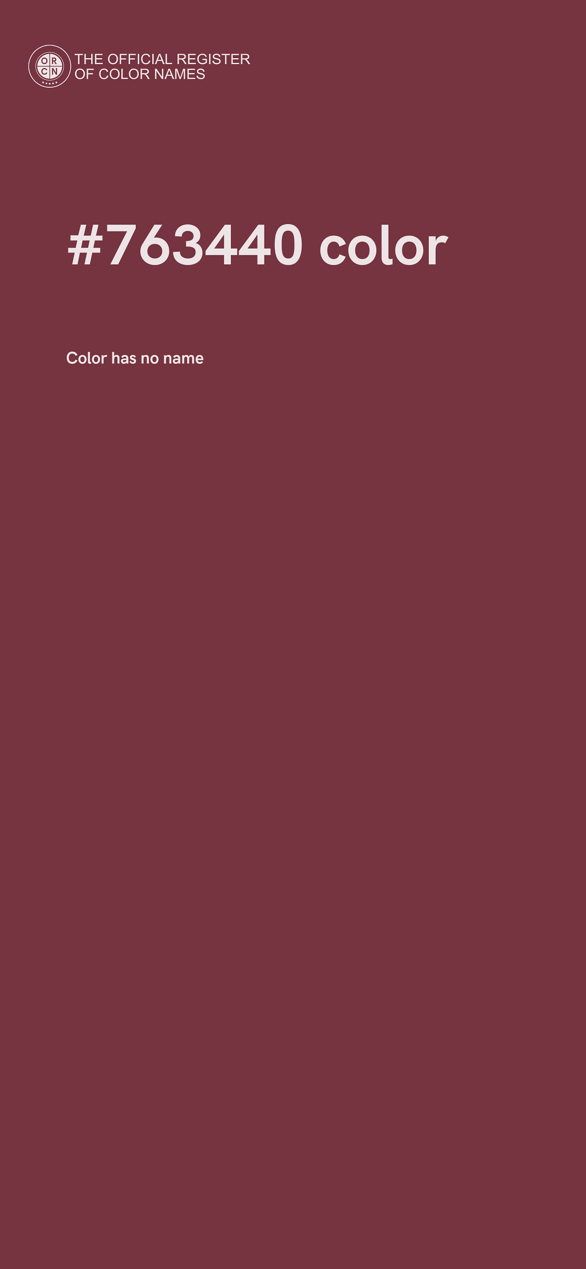 The digital color HEX #763440 belongs to the Red Color Family featuring Mild Saturation (Saturation Family) and Neutral (Brightness Family).