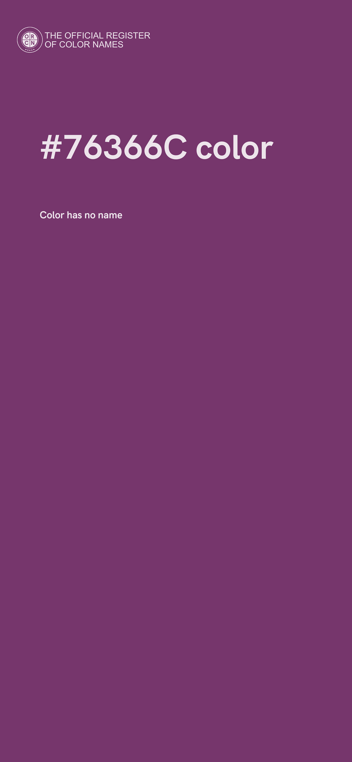 The digital color HEX #76366C belongs to the Magenta Color Family featuring Mild Saturation (Saturation Family) and Neutral (Brightness Family).