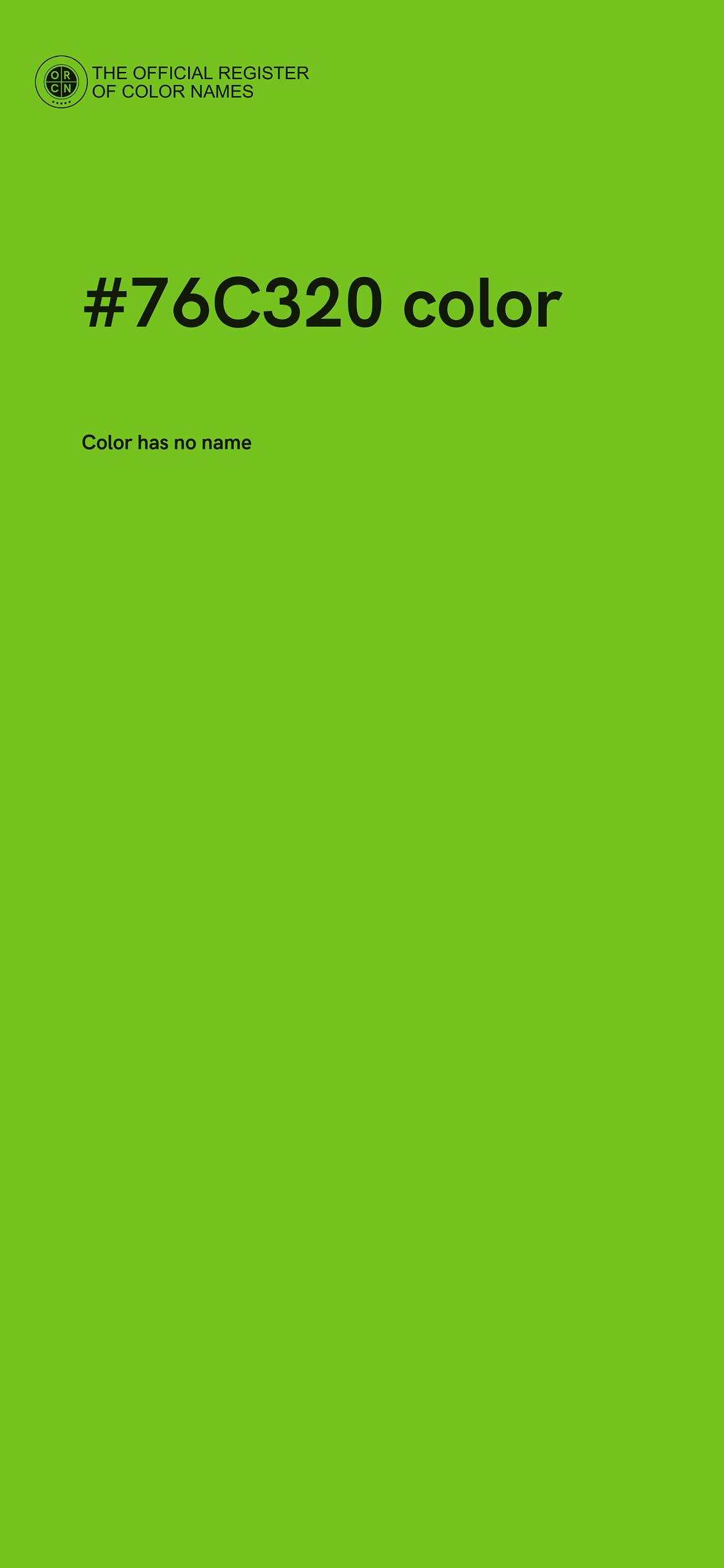 The digital color HEX #76C320 belongs to the Chartreuse Color Family featuring High Saturation (Saturation Family) and Light (Brightness Family).