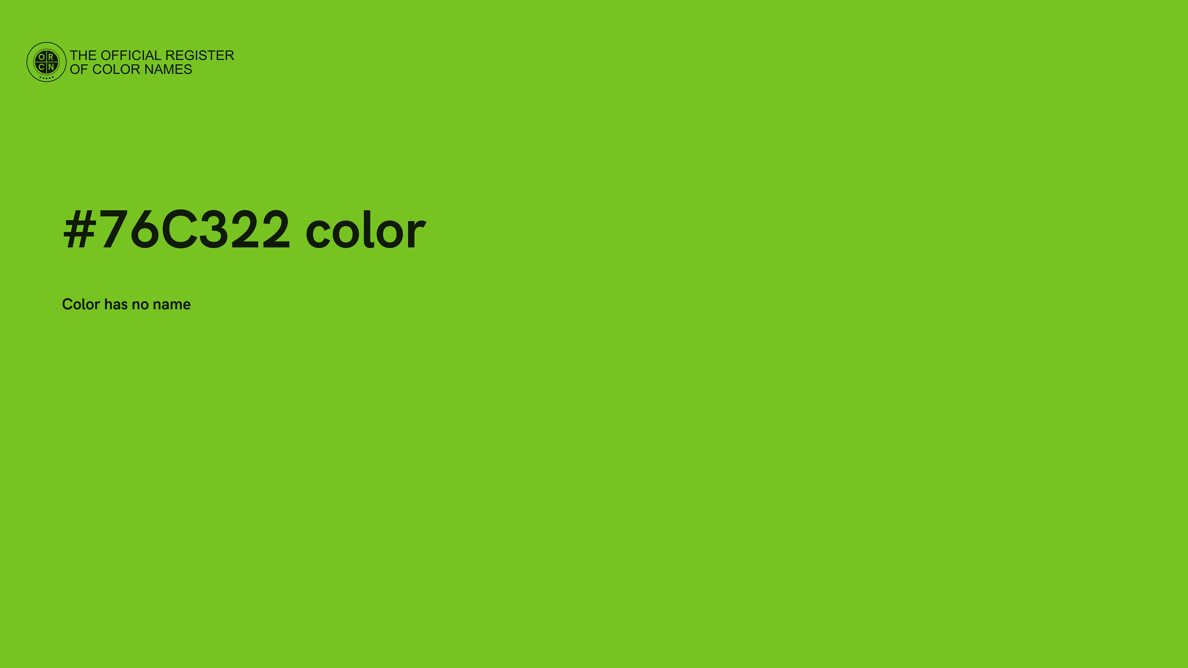 The digital color HEX #76C322 belongs to the Chartreuse Color Family featuring High Saturation (Saturation Family) and Light (Brightness Family).