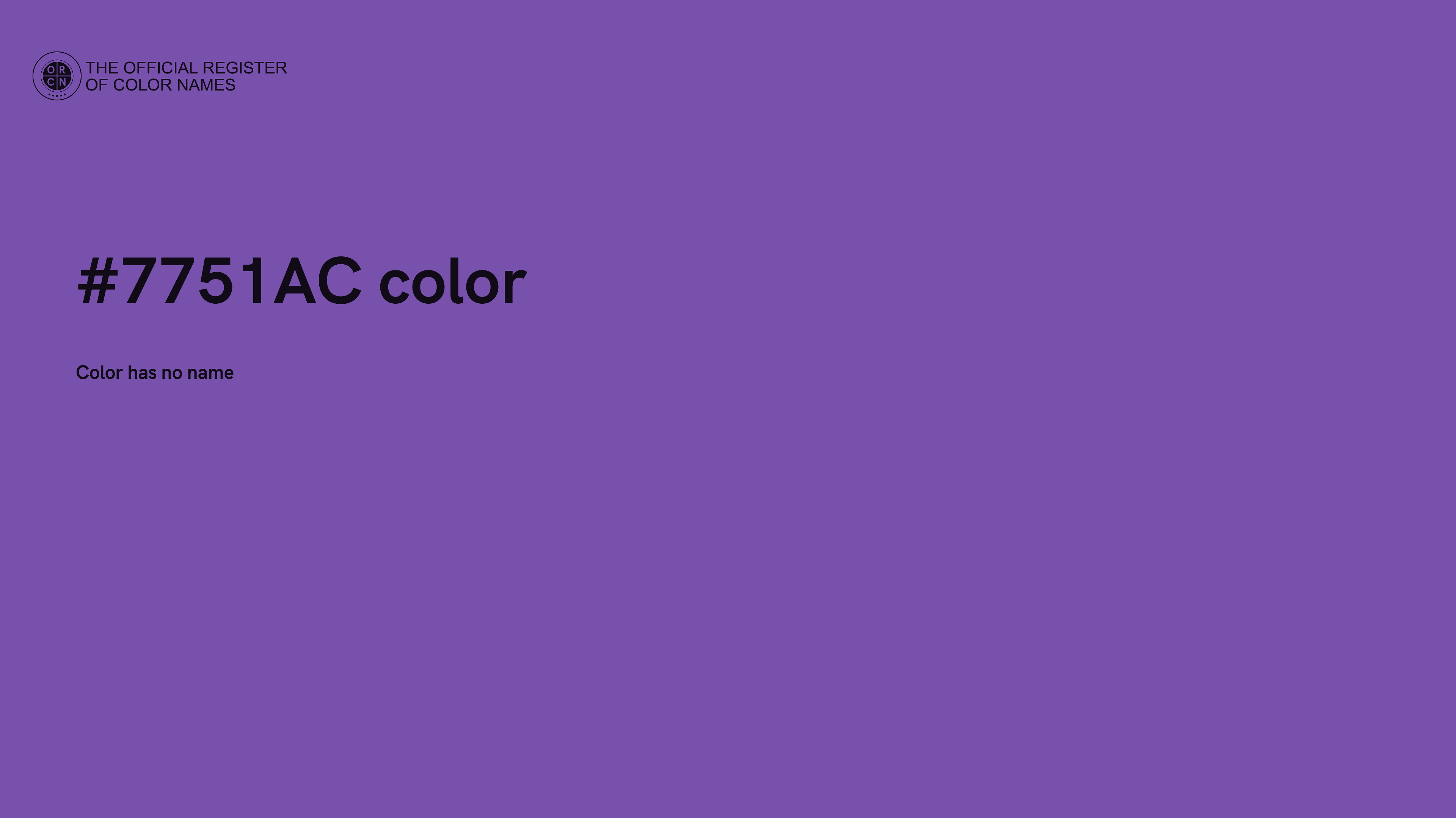 The digital color HEX #7751AC belongs to the Violet Color Family featuring Mild Saturation (Saturation Family) and Light (Brightness Family).
